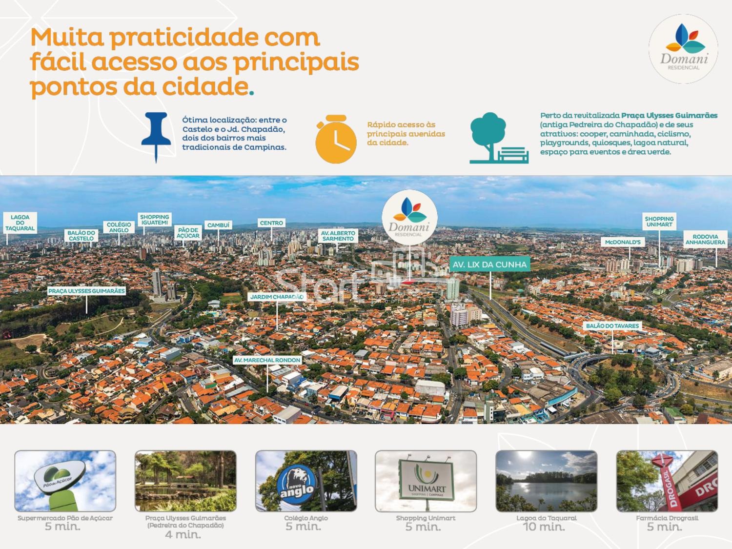 O Domani Residencial tem seus apartamentos no Jardim Chapadão, Campinas, na R. Quintino Bocaiúva, com acesso pela Av. Lix da Cunha. Uma região que proporciona rápido acesso tanto à Anhanguera quanto ao Cambuí.