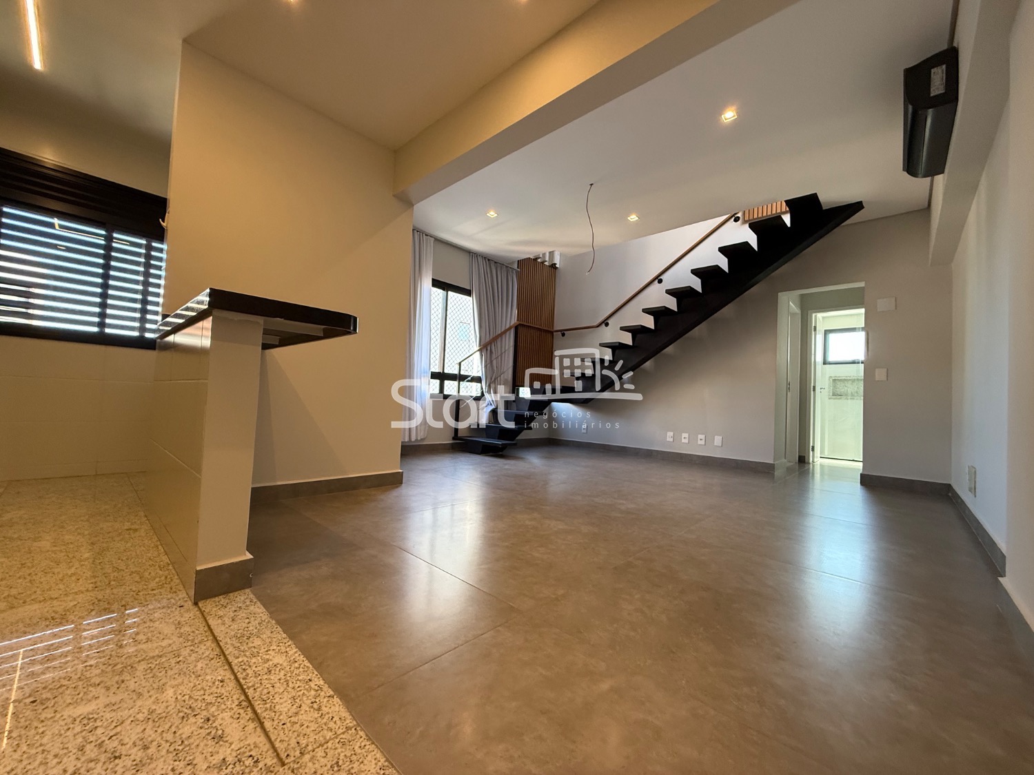 Duplex - Piso terreo com living para 2 ambientes, cozinha estilo americana planejada e 1 suite planejada
