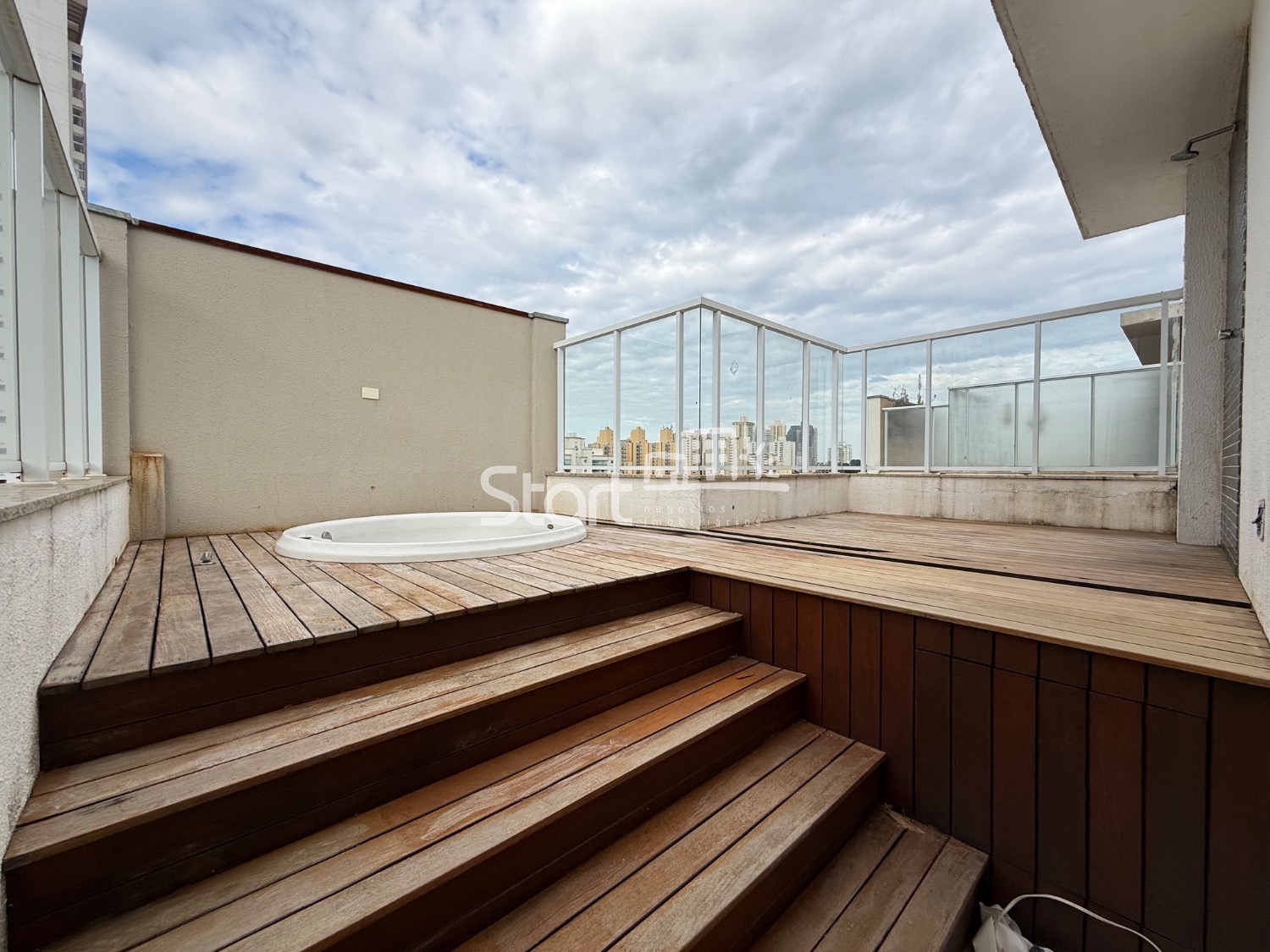 Piso superior com sala de tv, lavabo, lavanderia, terraço com jacuzzi e espaço gourmet, armário privativo na garagem.