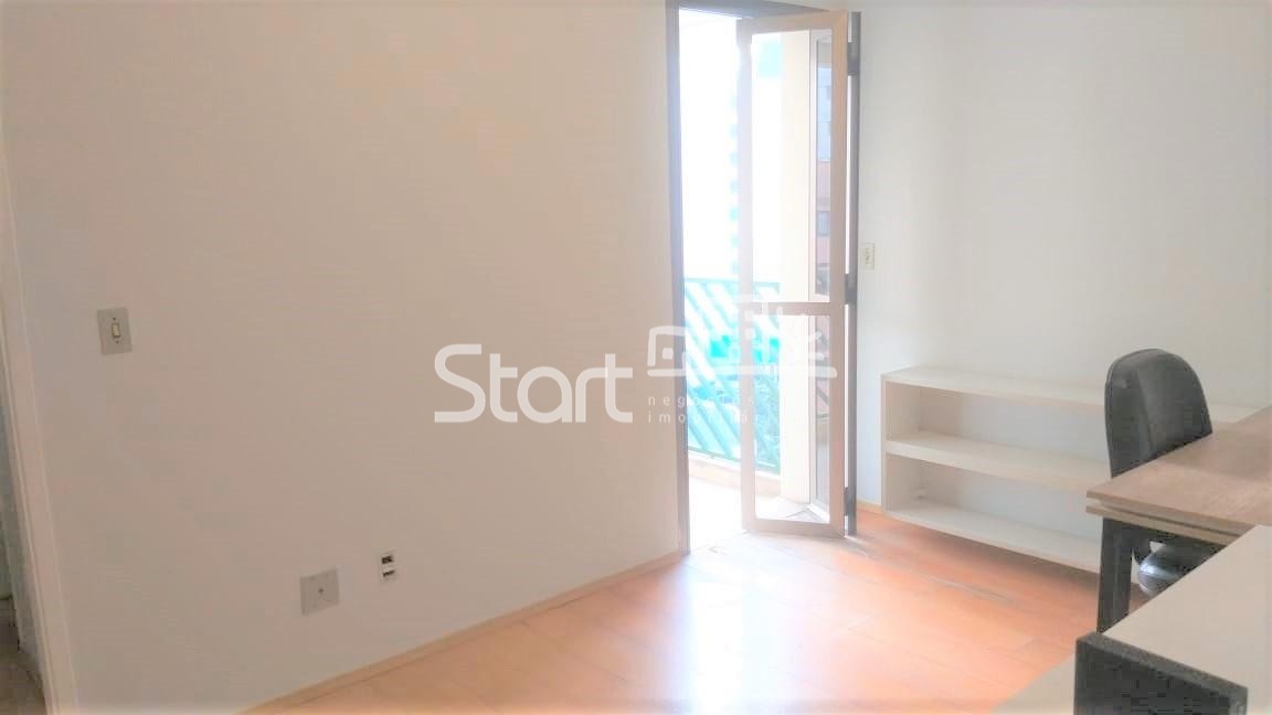 Apartamento em andar alto, com sacada e ótima iluminação natural. Conta com sala para dois ambientes, cozinha planejada com armários, banheiro social e quarto com armários embutidos.