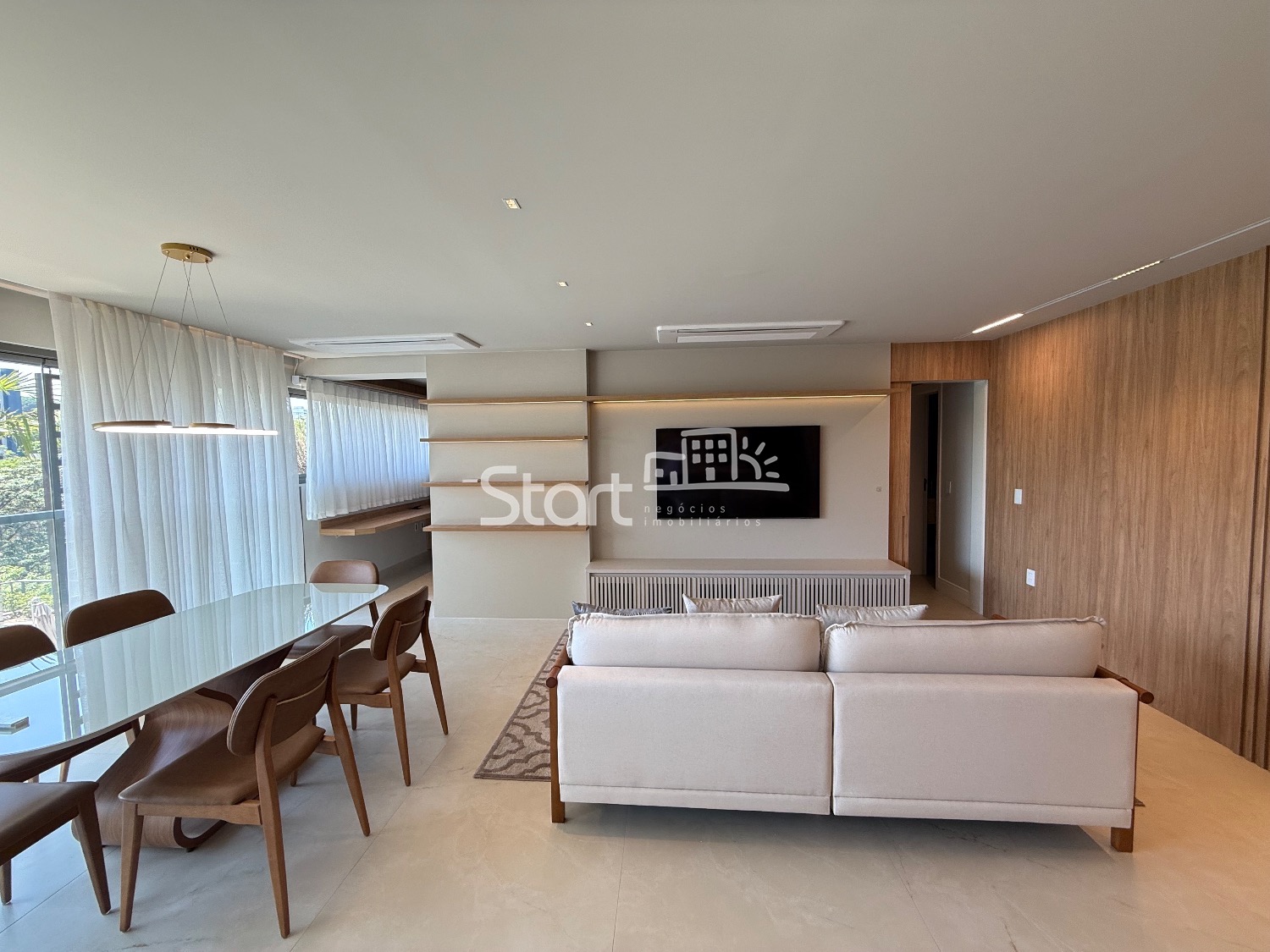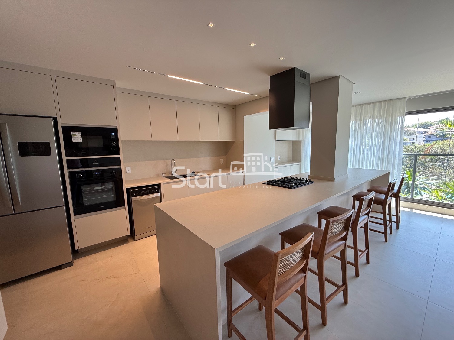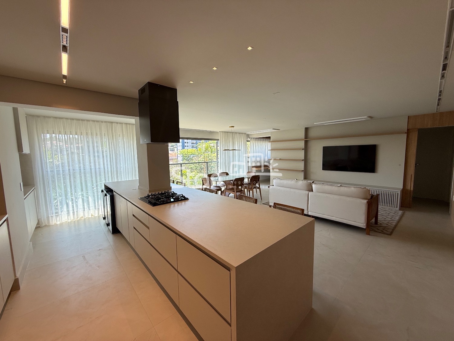 O imóvel é totalmente mobiliado e conta com acabamentos de primeira linha, incluindo piso porcelanato, iluminação embutida, ar condicionado em todos ambientes, eletrodomésticos e detalhes que garantem um toque sofisticado em cada ambiente.