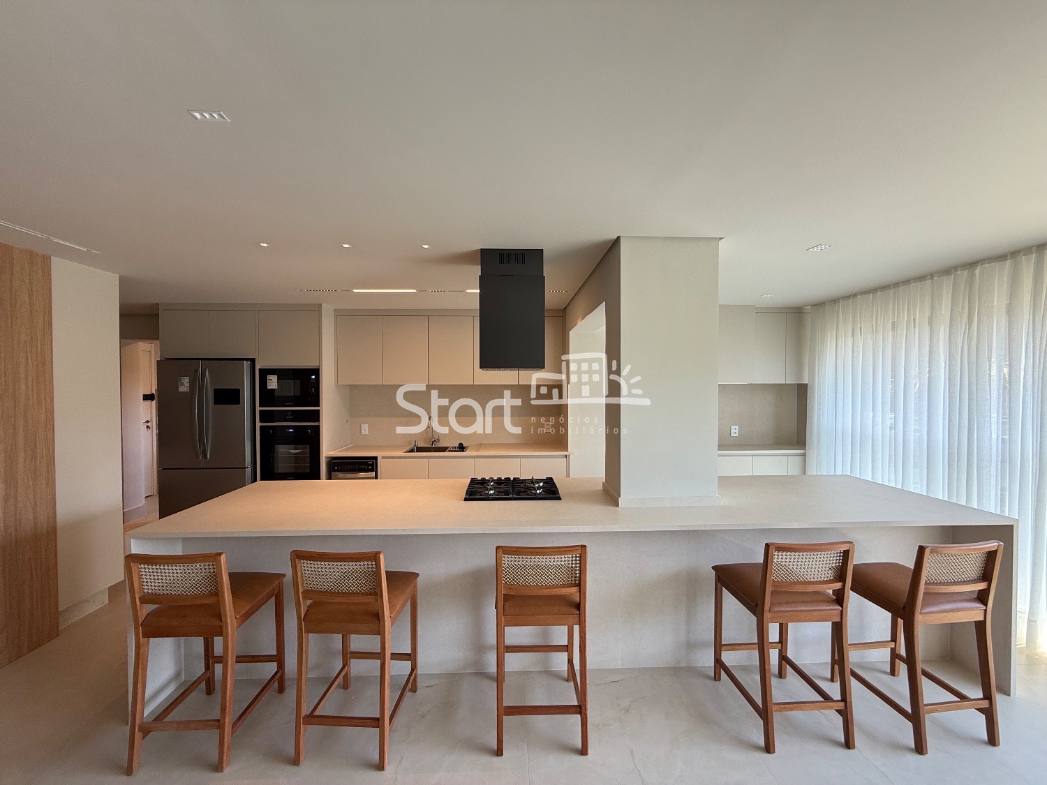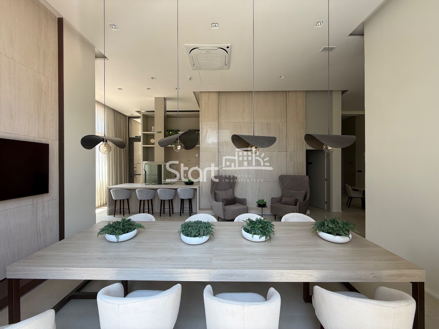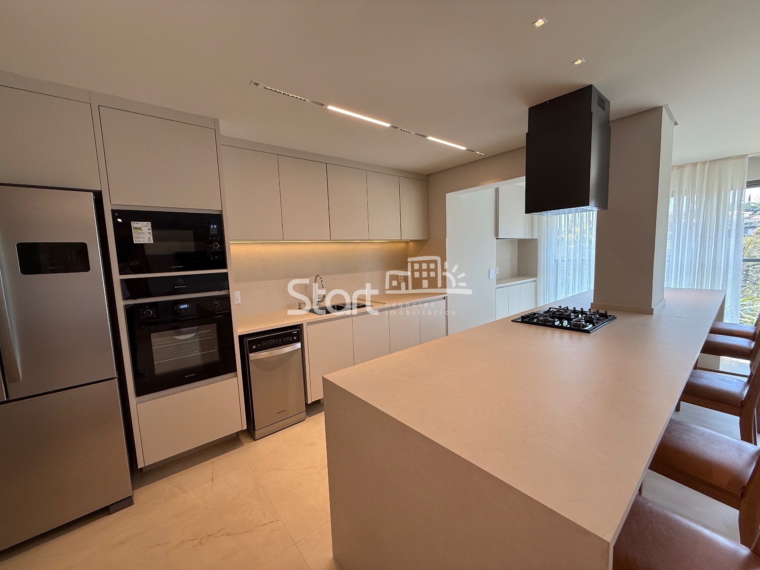 O imóvel é totalmente mobiliado e conta com acabamentos de primeira linha, incluindo piso porcelanato, iluminação embutida, ar condicionado em todos ambientes, eletrodomésticos e detalhes que garantem um toque sofisticado em cada ambiente.