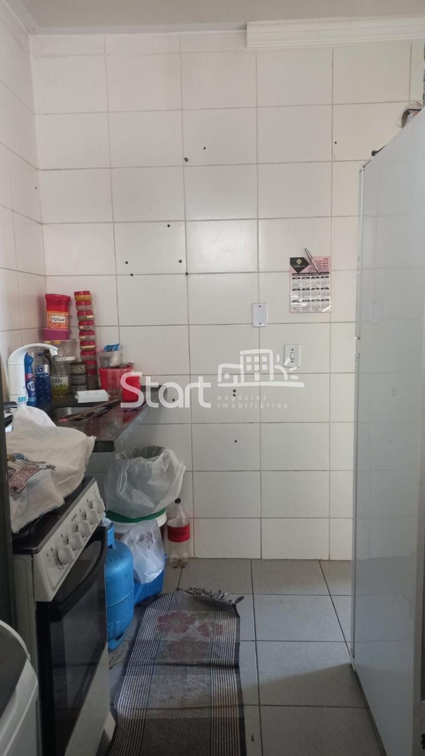 Sendo 2 quartos, sala, cozinha, banheiro social e área de serviço.