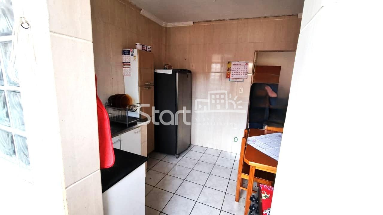 3 quartos, sendo 2 com guarda-roupas embutidos, 1 banheiro ,Sala ampla para 2 ambientes, Cozinha ,área de serviço e 1 vaga de garagem.