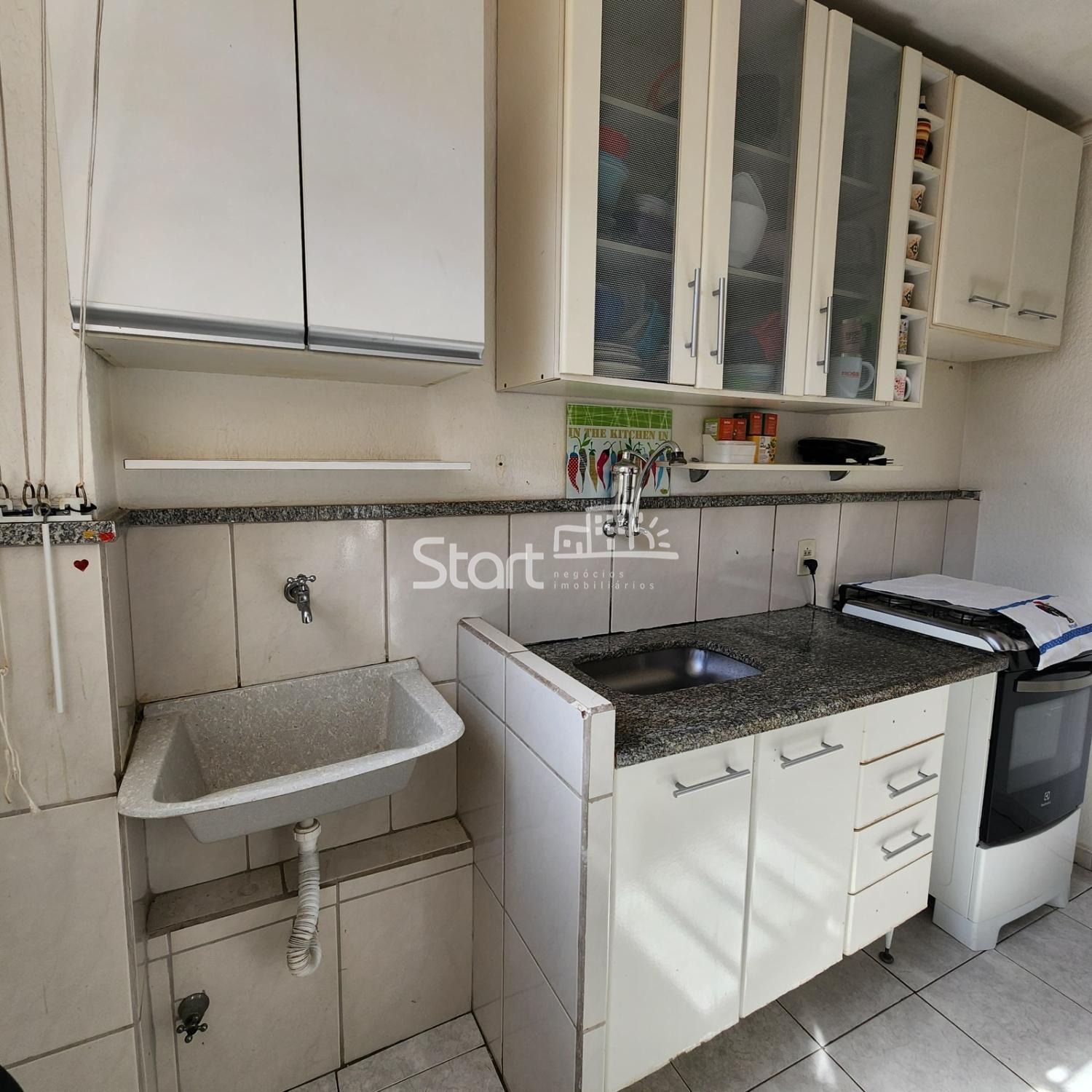 Cozinha: Equipada com pia, bancada de granito e armários planejados