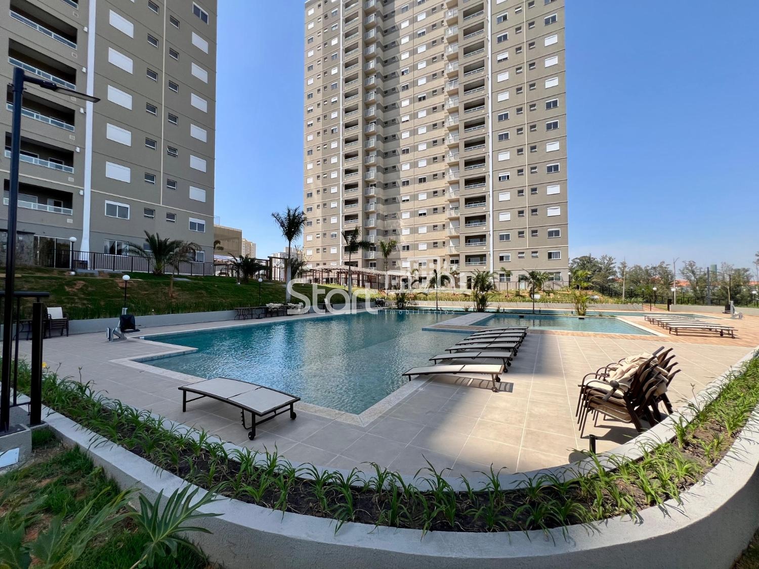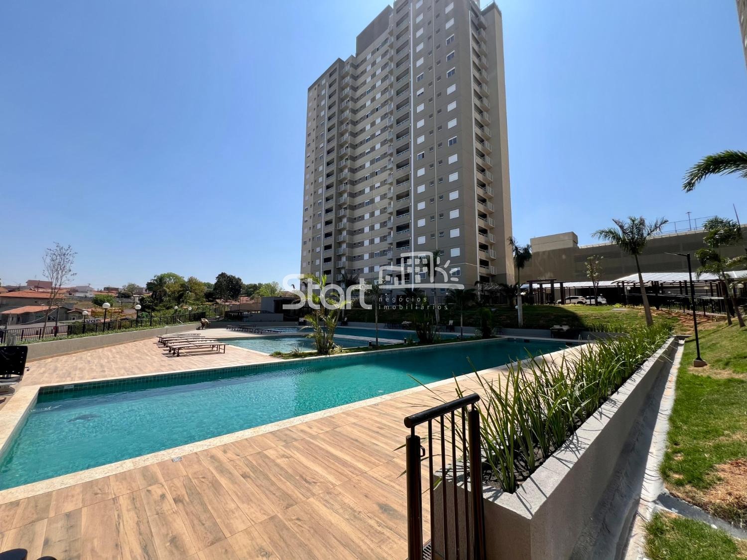Condomínio completo com piscina, academia, salão de festas, salão de jogos, quadra poliesportiva, playground, portaria, com duas torres.