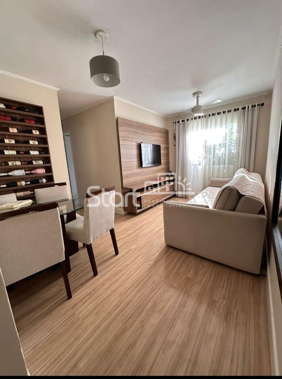 Ambientes Sofisticados: Acolhedora sala para 2 ambientes, perfeita para receber, com elegante piso laminado novo que garante aconchego e fácil manutenção.
