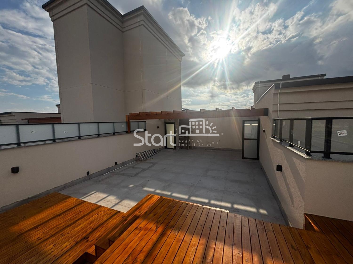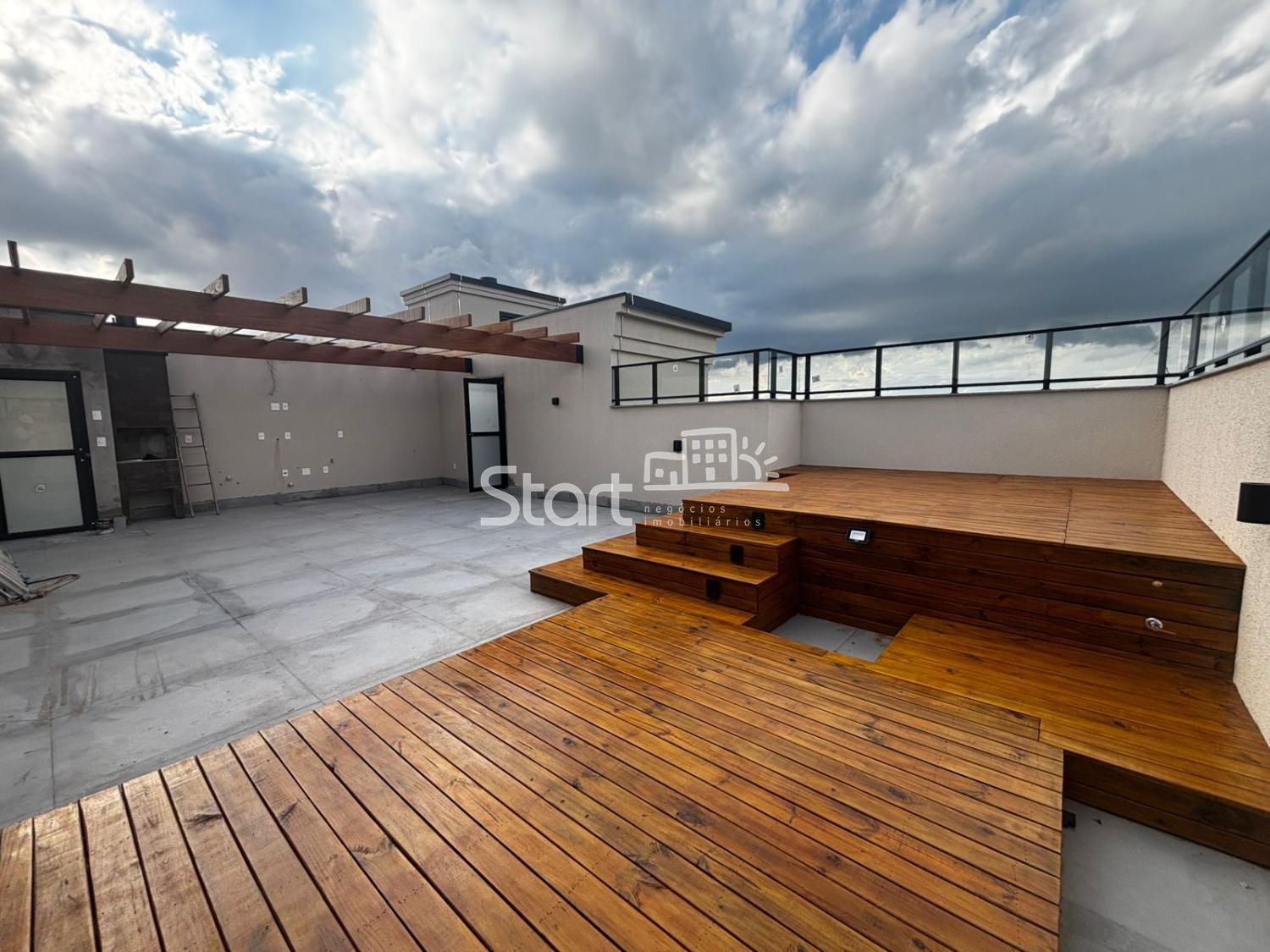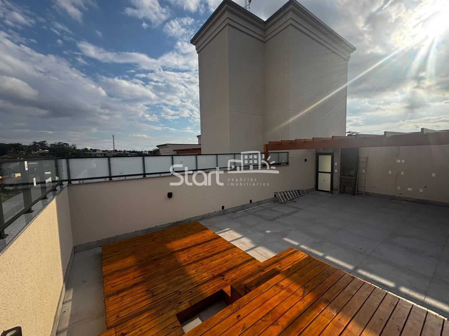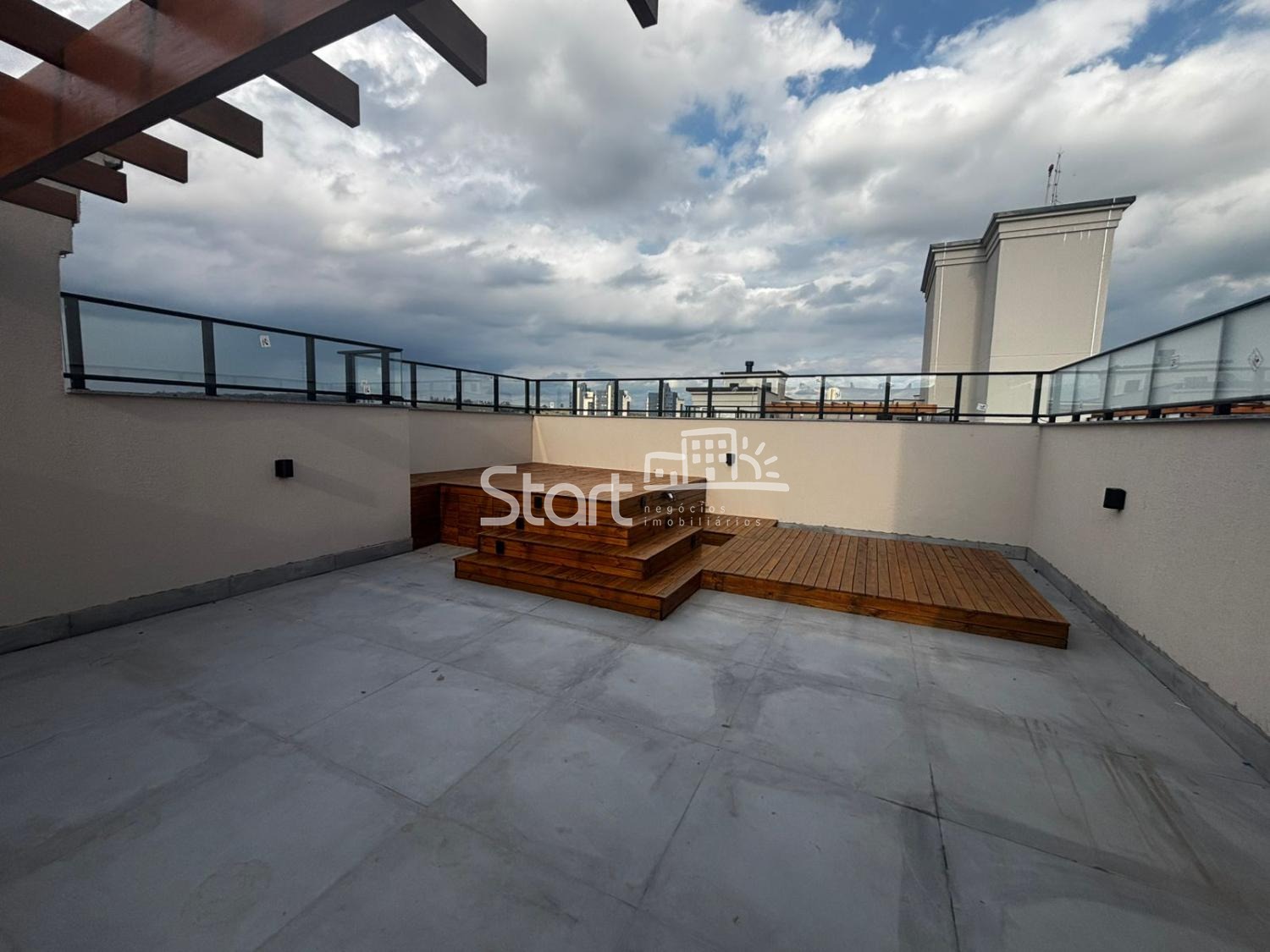 Piso Superior (Rooftop): Acesso via escada caracol interna, Espaço gourmet completo, Deck de madeira já instalado, Área de lazer privativa com vista panorâmica.
