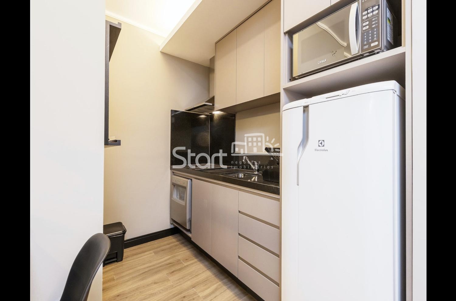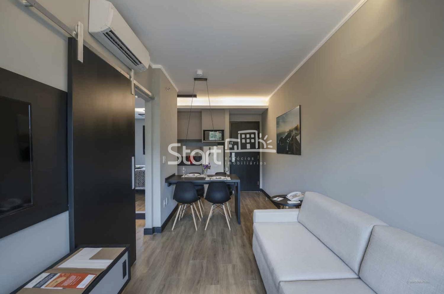 Apartamento totalmente decorado e mobiliado, com um quarto, Sala, Banheiro Social e Cozinha, com Armários Planejados de extremo bom gosto.