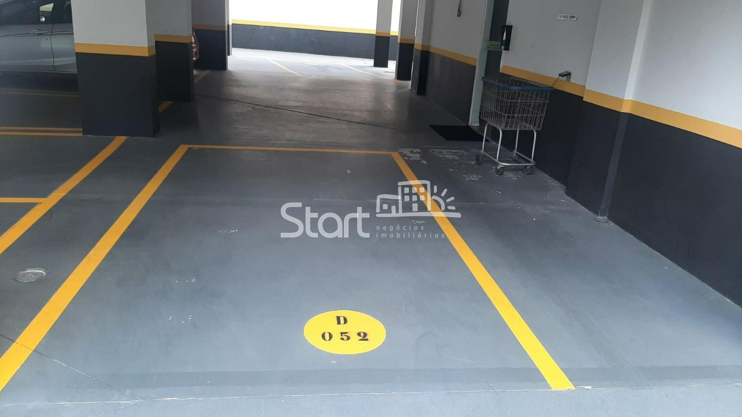 Uma vaga de garagem ótima, espaçosa e na frente da entrada do bloco.