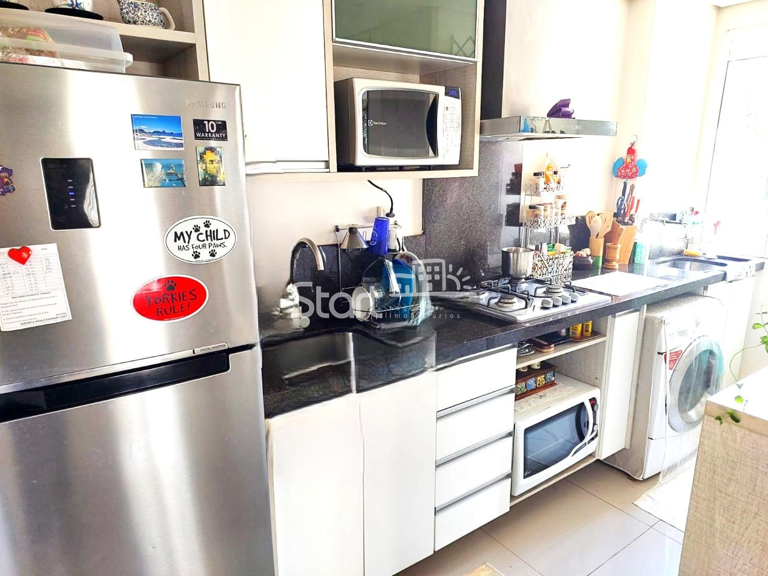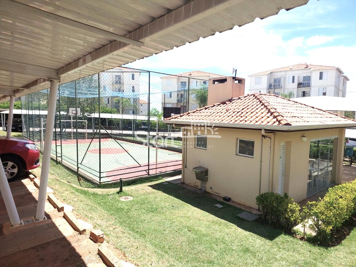 O prédio não possui elevador e o condomínio é formado por 10 torres, possui playground, quadra poliesportiva, salão de festas e mini mercado.