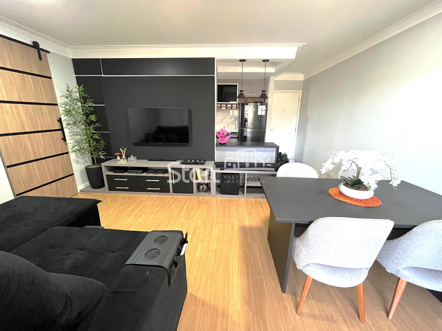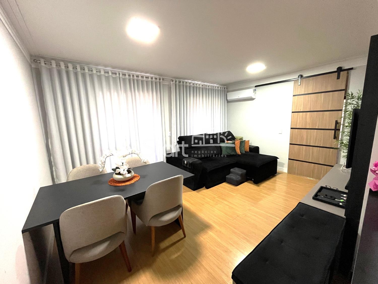 Com 3 quartos sendo 1 suíte, sala ampla para dois ambientes com varanda e churrasqueira.