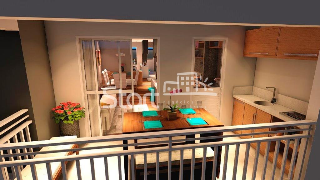 Apartamento com 75 m2, três quartos, sendo um suíte, varanda gourmet integrada à cozinha e sala. Está com piso vinílico.
