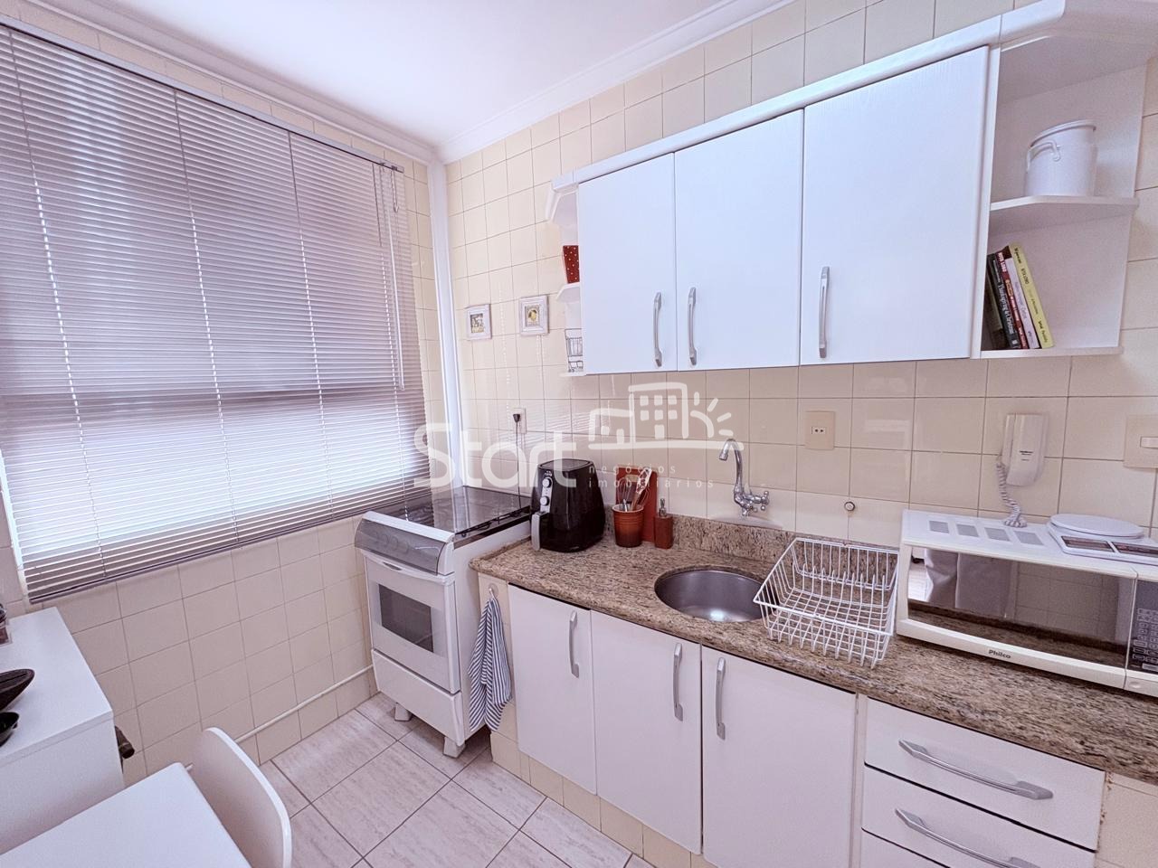 O imóvel conta com 1 quarto, 1 vaga de garagem e uma sala ampla, bem iluminada e com excelente distribuição dos ambientes, proporcionando conforto e praticidade no dia a dia. A cozinha planejada oferece funcionalidade e ótimo aproveitamento de espaço, além de lavanderia independente com banheiro de apoio, um diferencial importante para a região central.