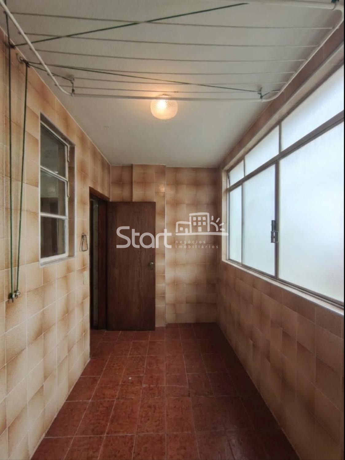 O apartamento conta com sala ampla, banheiro social e uma cozinha funcional que se conecta a uma lavanderia e área de serviço totalmente independente. Um dos grandes destaques desta unidade é o corredor de circulação privativo, equipado com janelas amplas que garantem uma ventilação cruzada impecável e tornam todos os ambientes muito bem iluminados e arejados.
