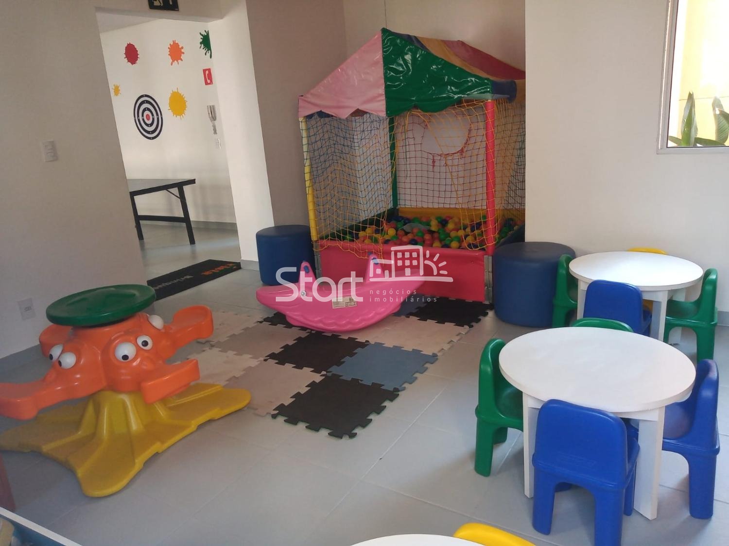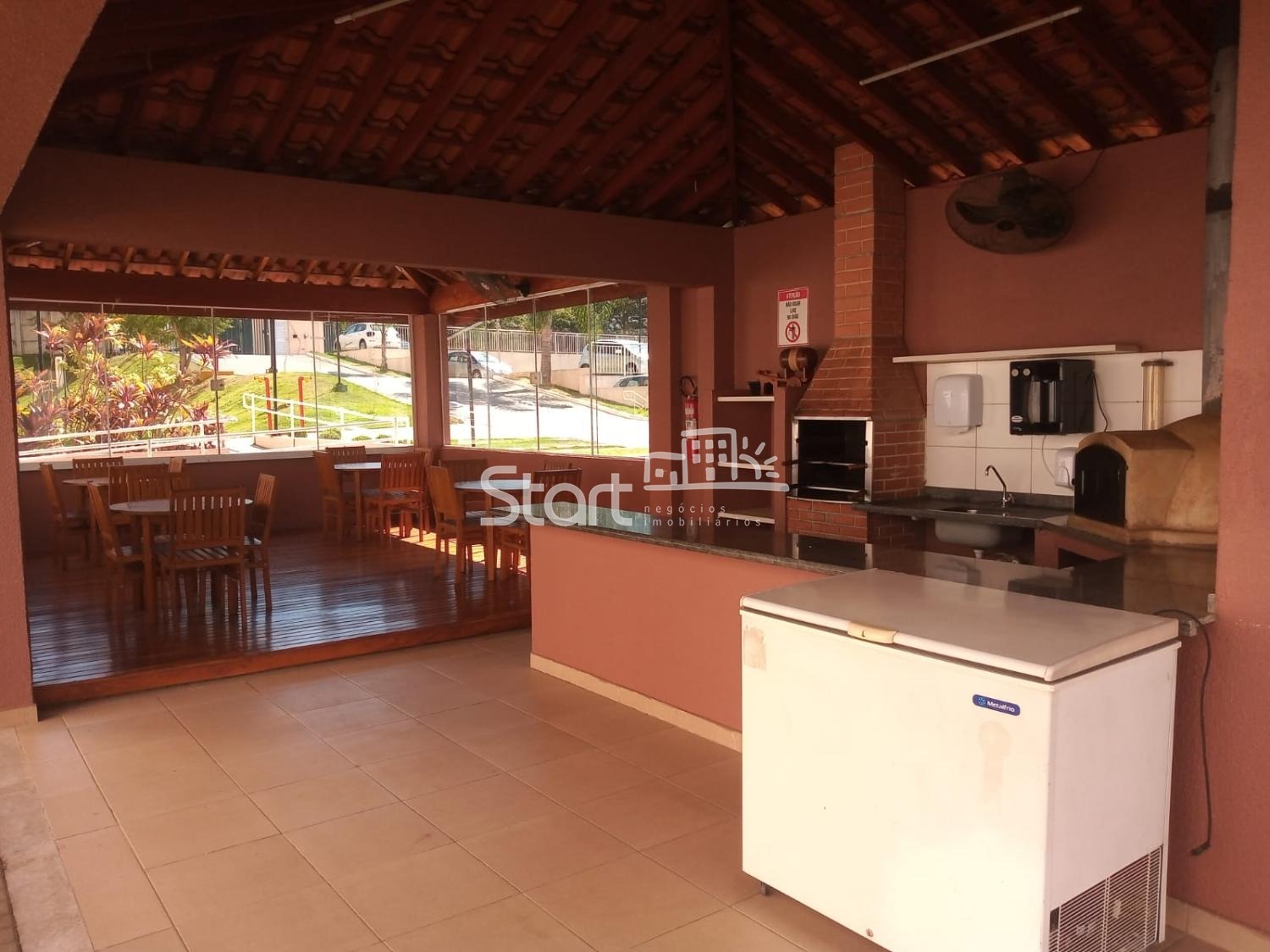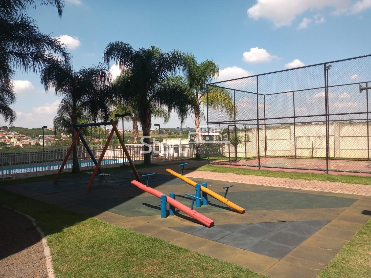 O condomínio possui área com churrasqueira, salão de festas, brinquedoteca, quadra de esportes, parque infantil e piscina.