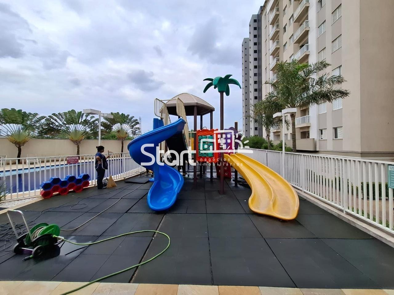 A área comum é de 109 mts², piscina adulto e infantil, quadra poliesportiva, academia com equipamentos recentemente adquiridos, sauna churrasqueira, bicicletário, playground e sala de jogos.