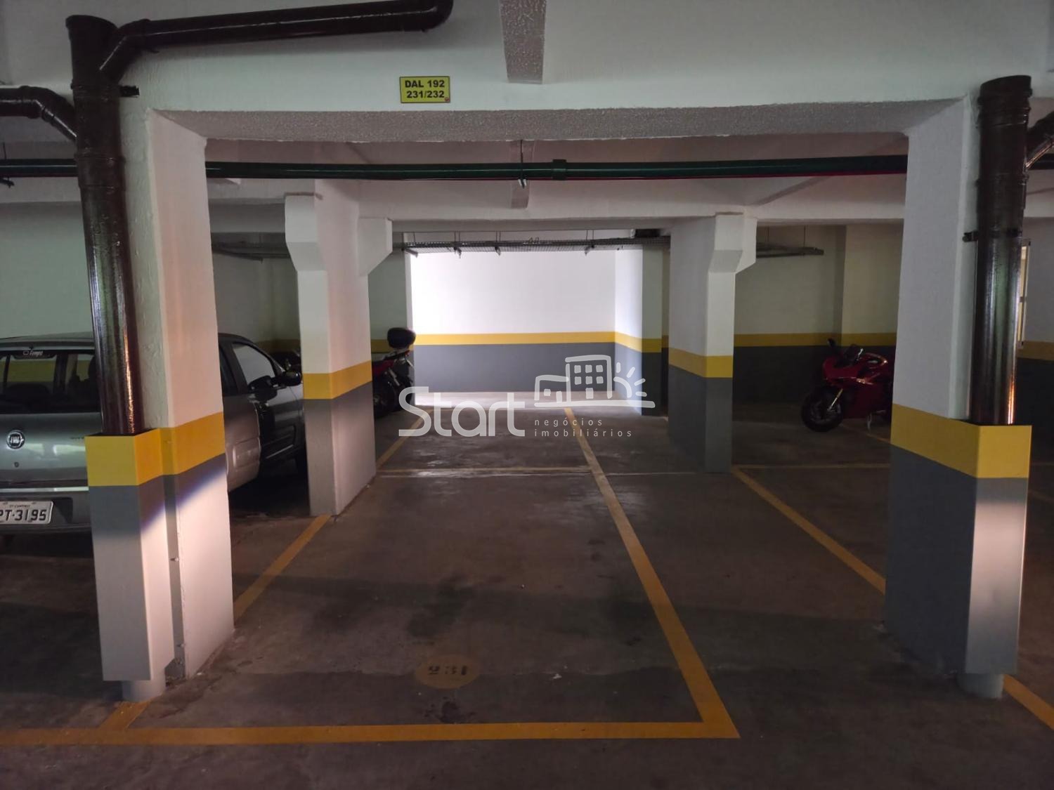 Duas vagas de garagem do tipo gaveta, cobertas, bem localizadas e com amplo espaço nas laterais e parte de trás.