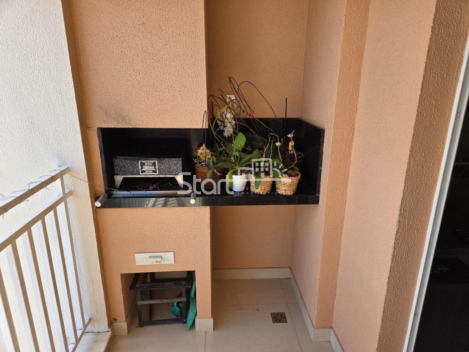Churrasqueira a carvão na sacada.