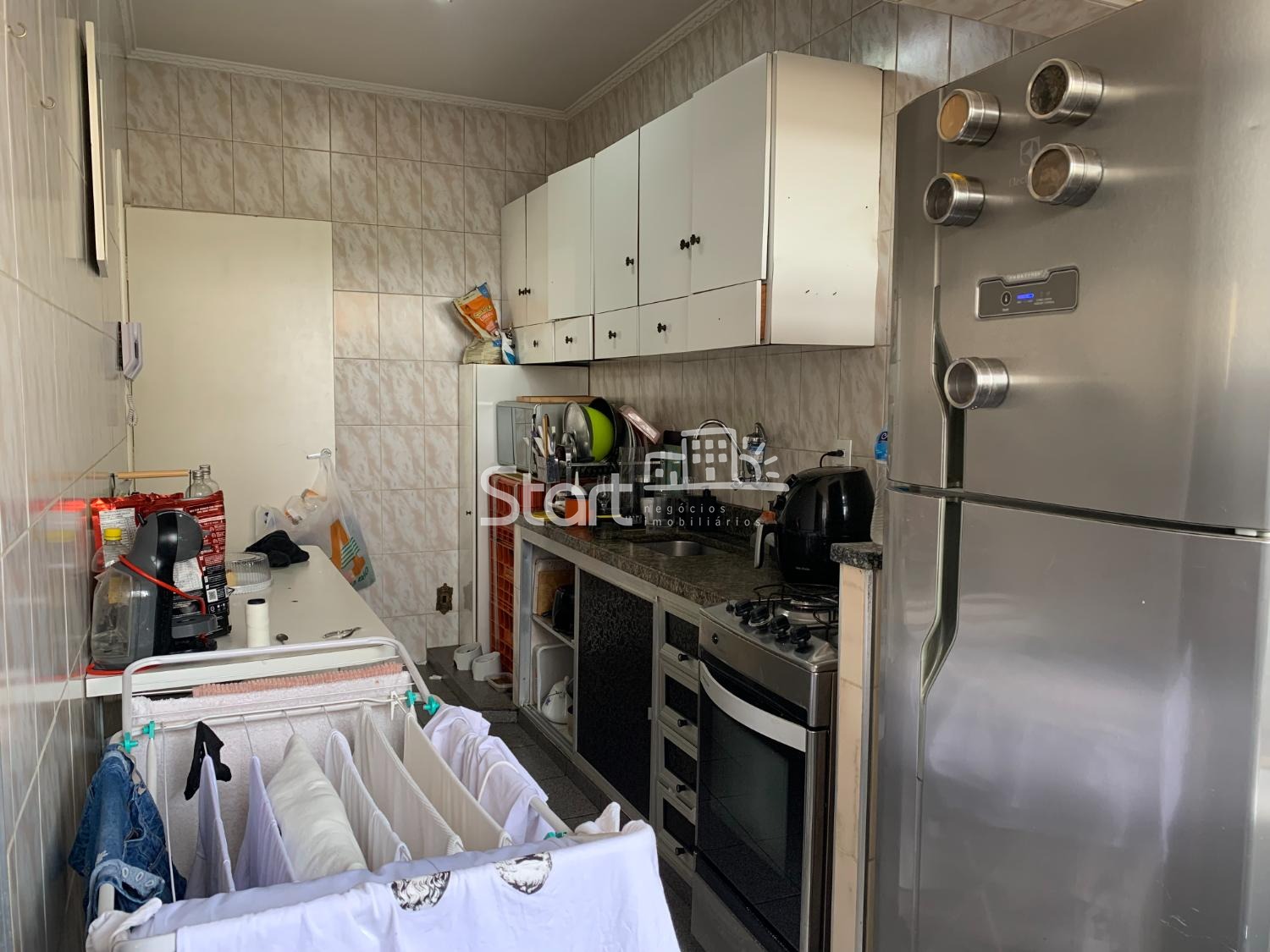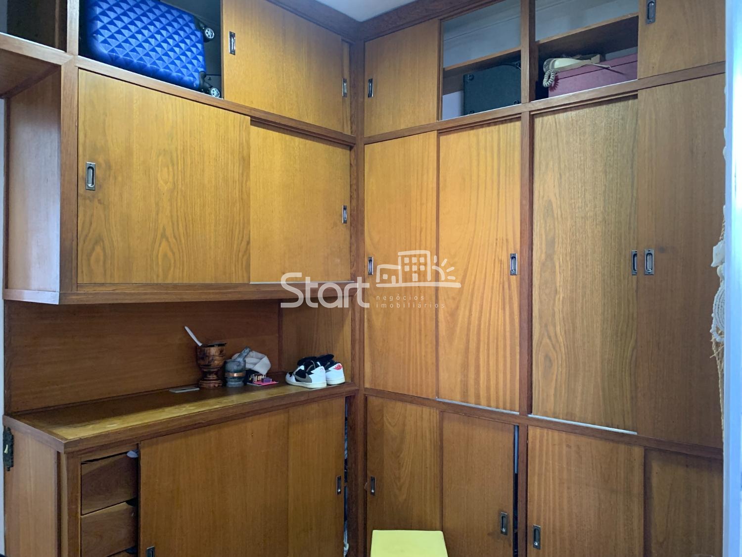 O imóvel conta com 3 dormitórios amplos, todos equipados com armários embutidos, e um banheiro social completo.