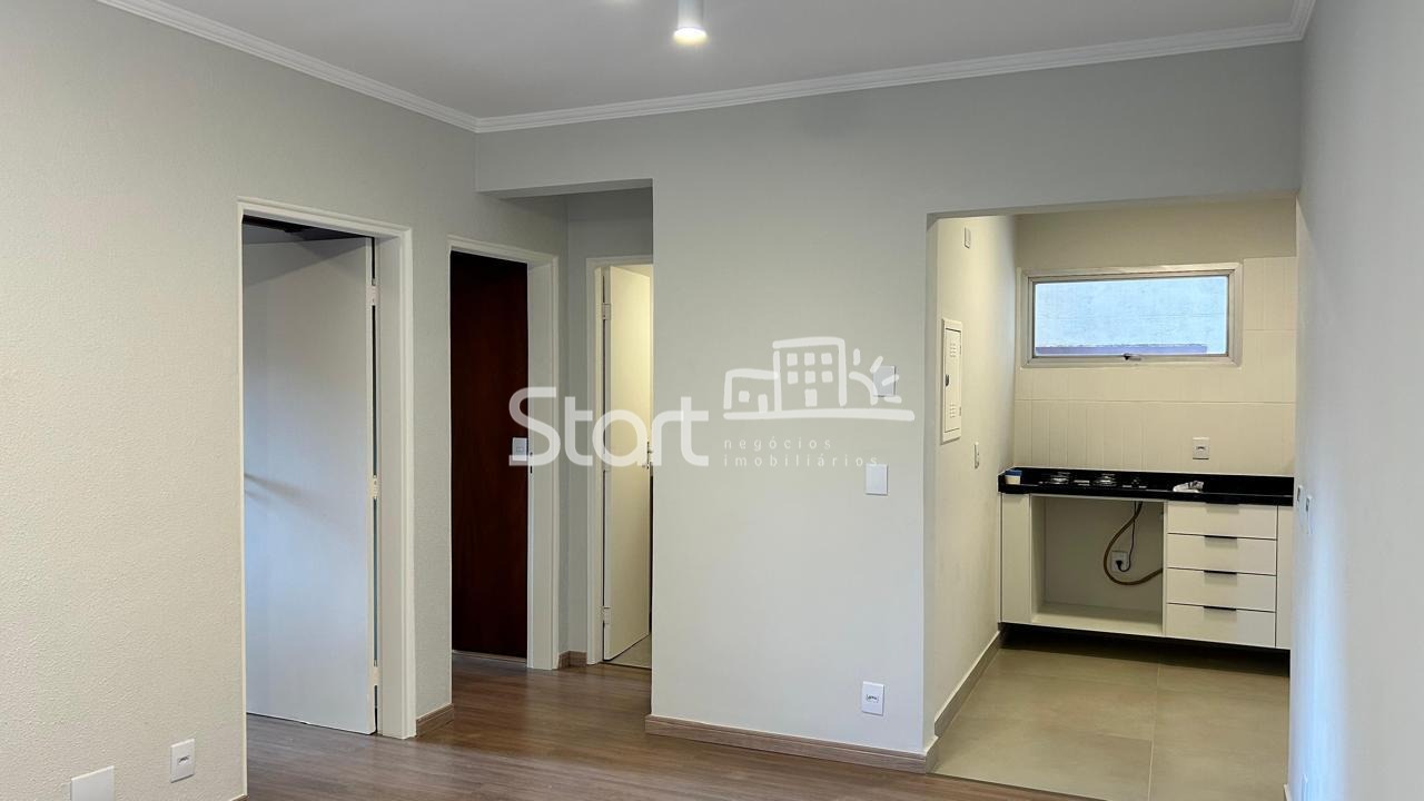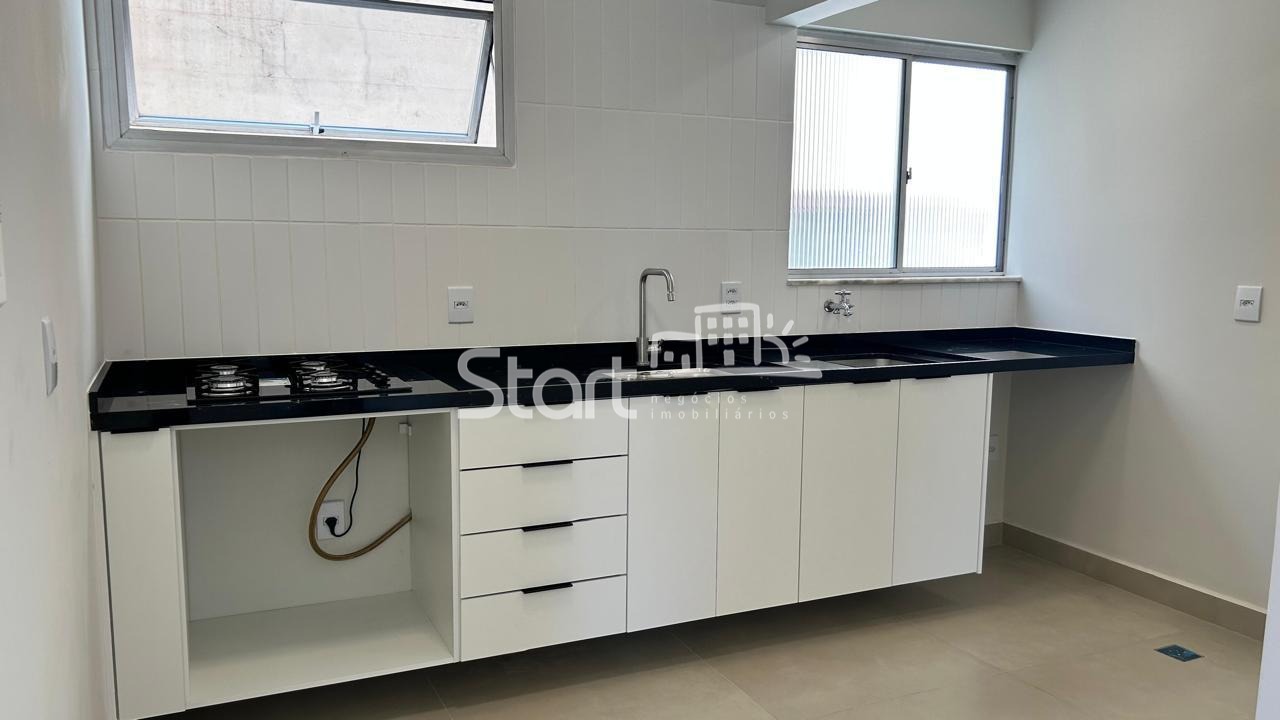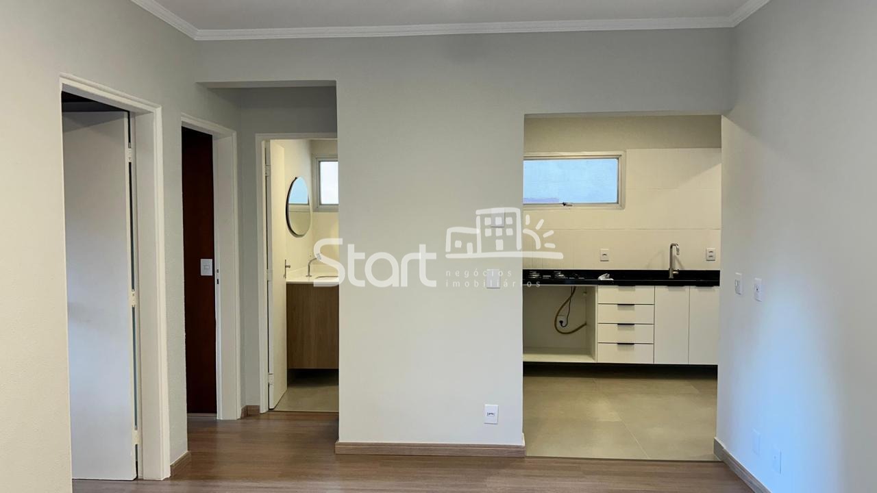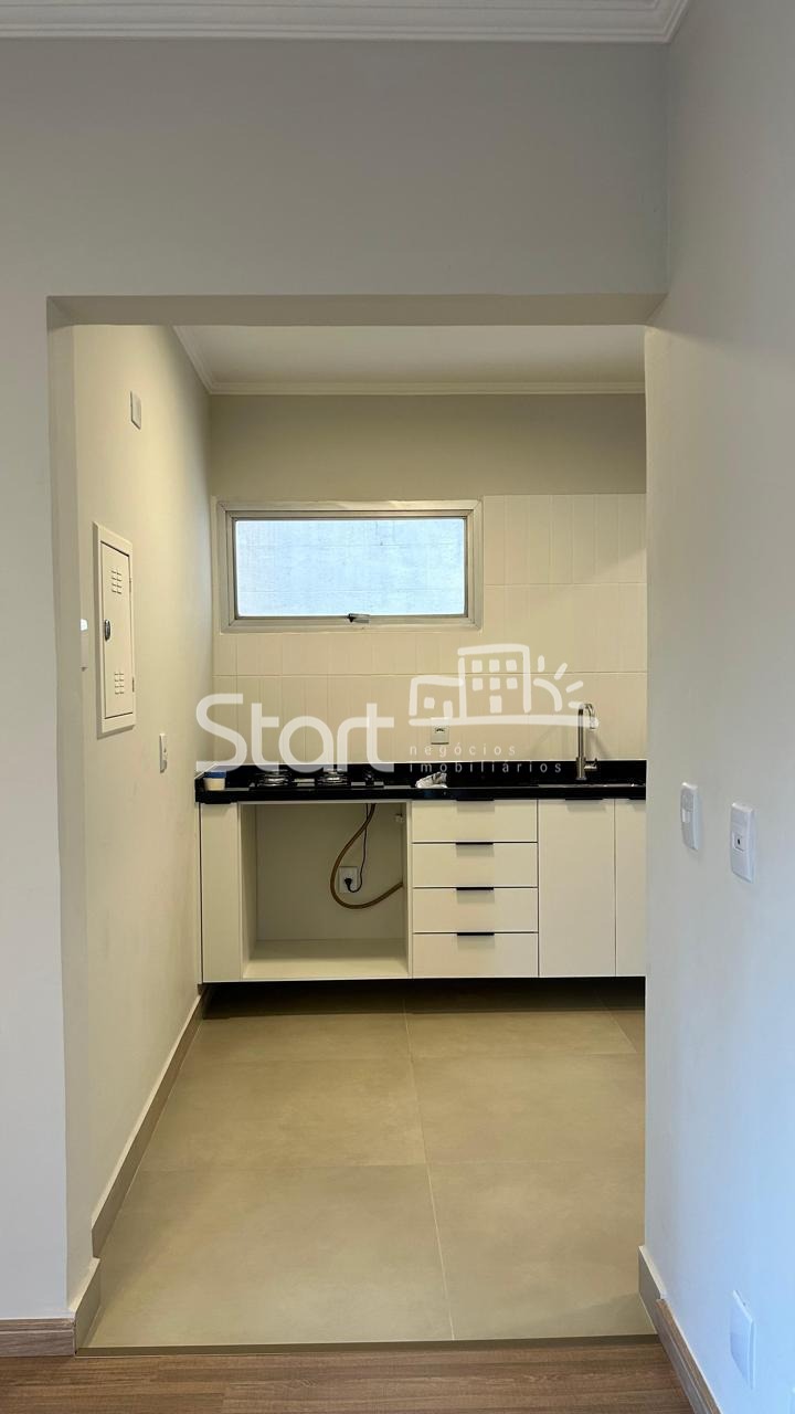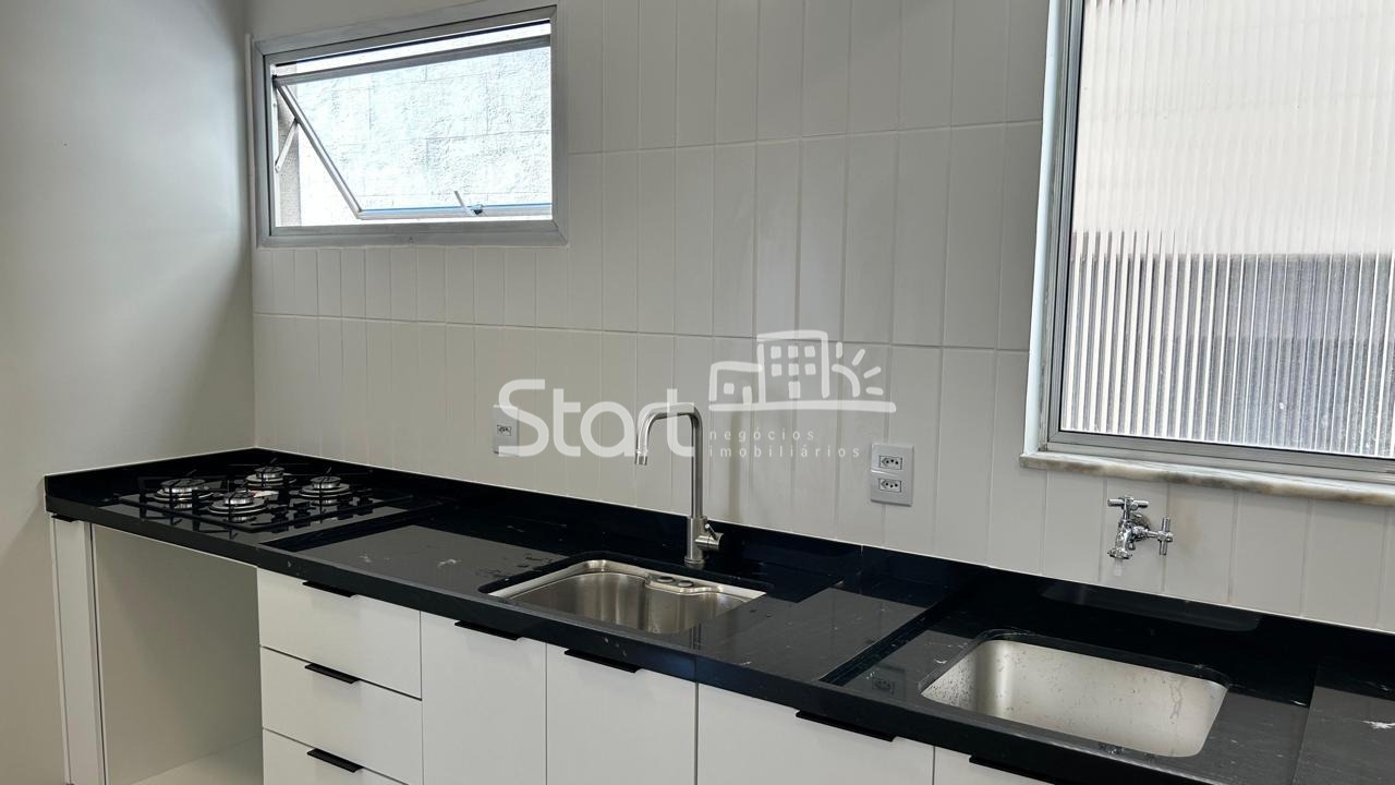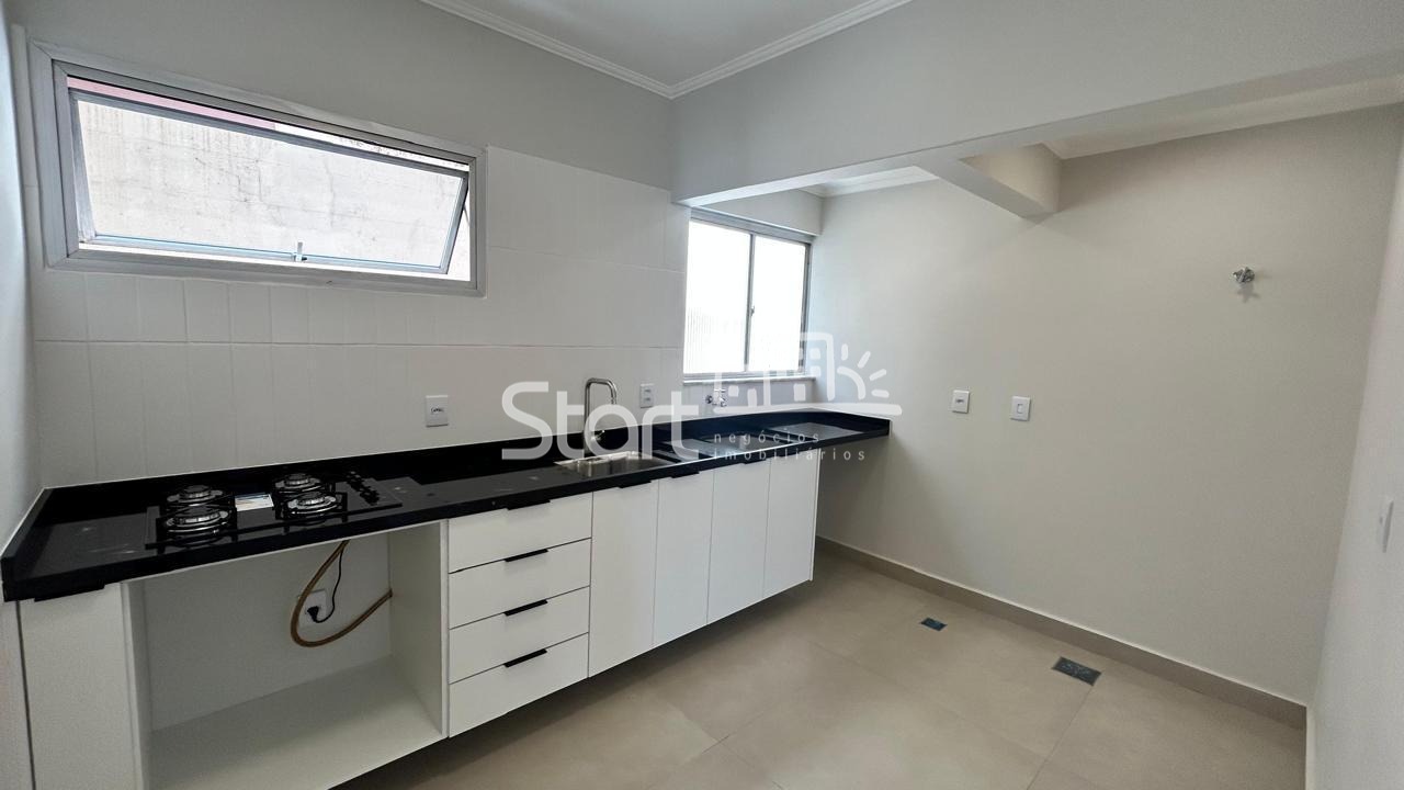 A cozinha é funcional e bem iluminada, com piso em porcelanato, armários novos e cooktop. O imóvel possui banheiro social completo e 2 dormitórios com excelente metragem, ambos com armários embutidos.
