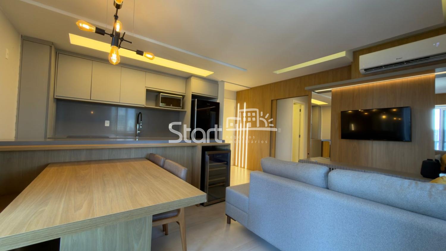 - 2 quartos, sendo 1 suíte. Todos com armários e cama. Suíte com televisão embutida no armário.