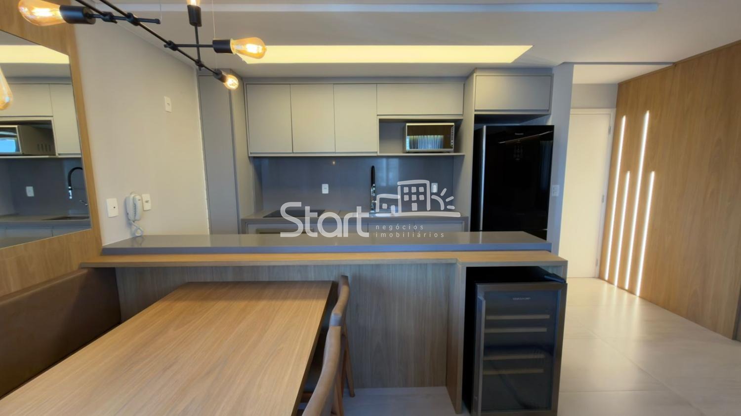 - Sala de jantar com mesa e cadeiras.