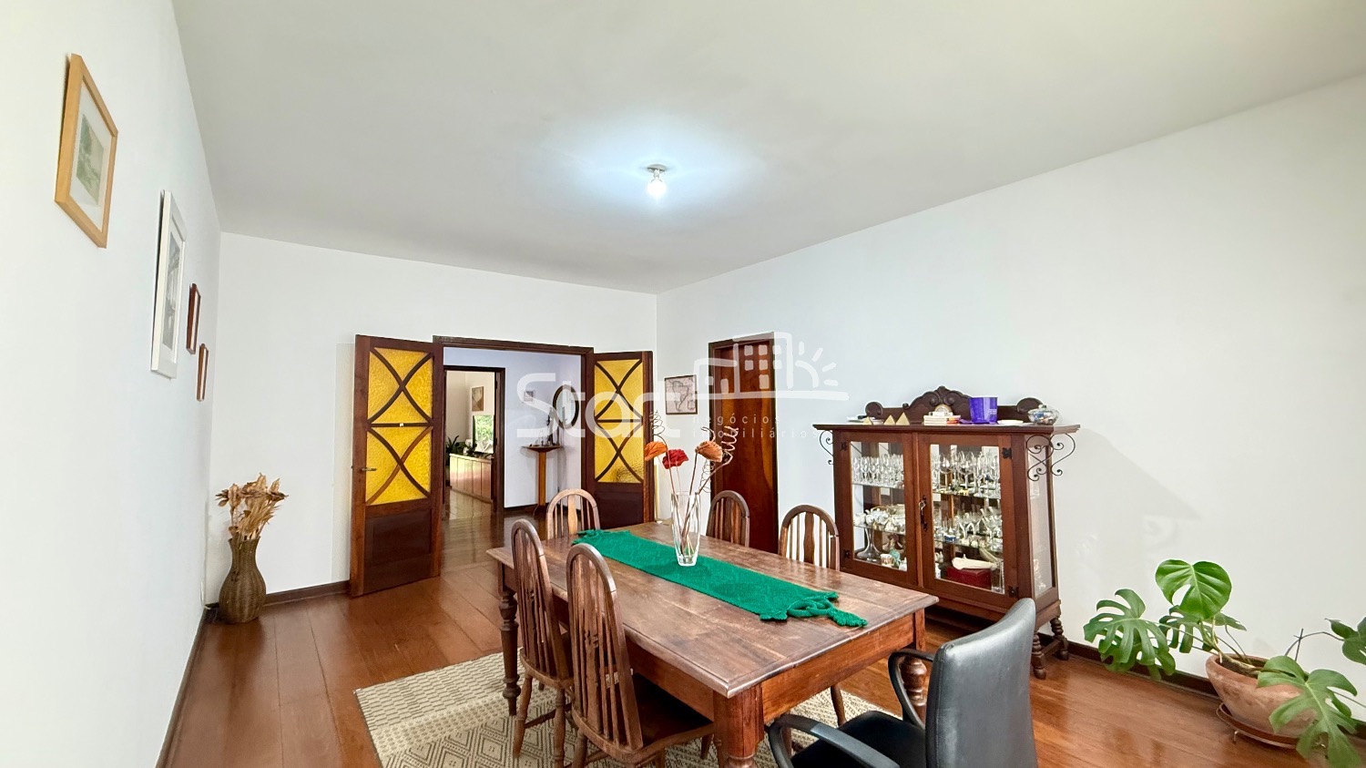 Casa com hall de entrada, sala de jantar com ar-condicionado, sala de tv com ar-condicionado, cozinha ampla com armário embutido e despensa, área de serviço coberta, banheiro de serviço, dormitório de serviço com armário embutido, lavabo, 03 quartos com armários embutidos e ar-condicionado, sendo 01 suíte, banheiro social, corredores e hall de distribuição amplos e com armário, quintal amplo com arvores frutíferas, espaço gourmet com churrasqueira, forno para pizza, 01 dormitório, 01 banheiro e ampla área coberta.