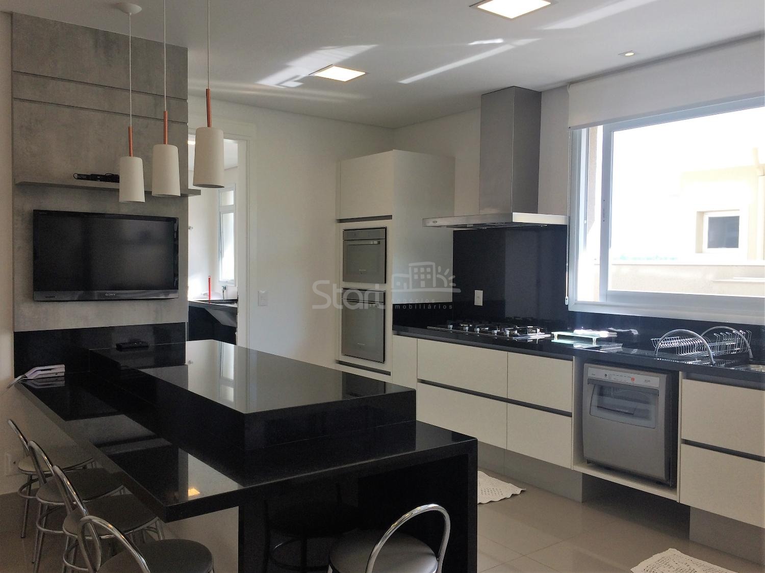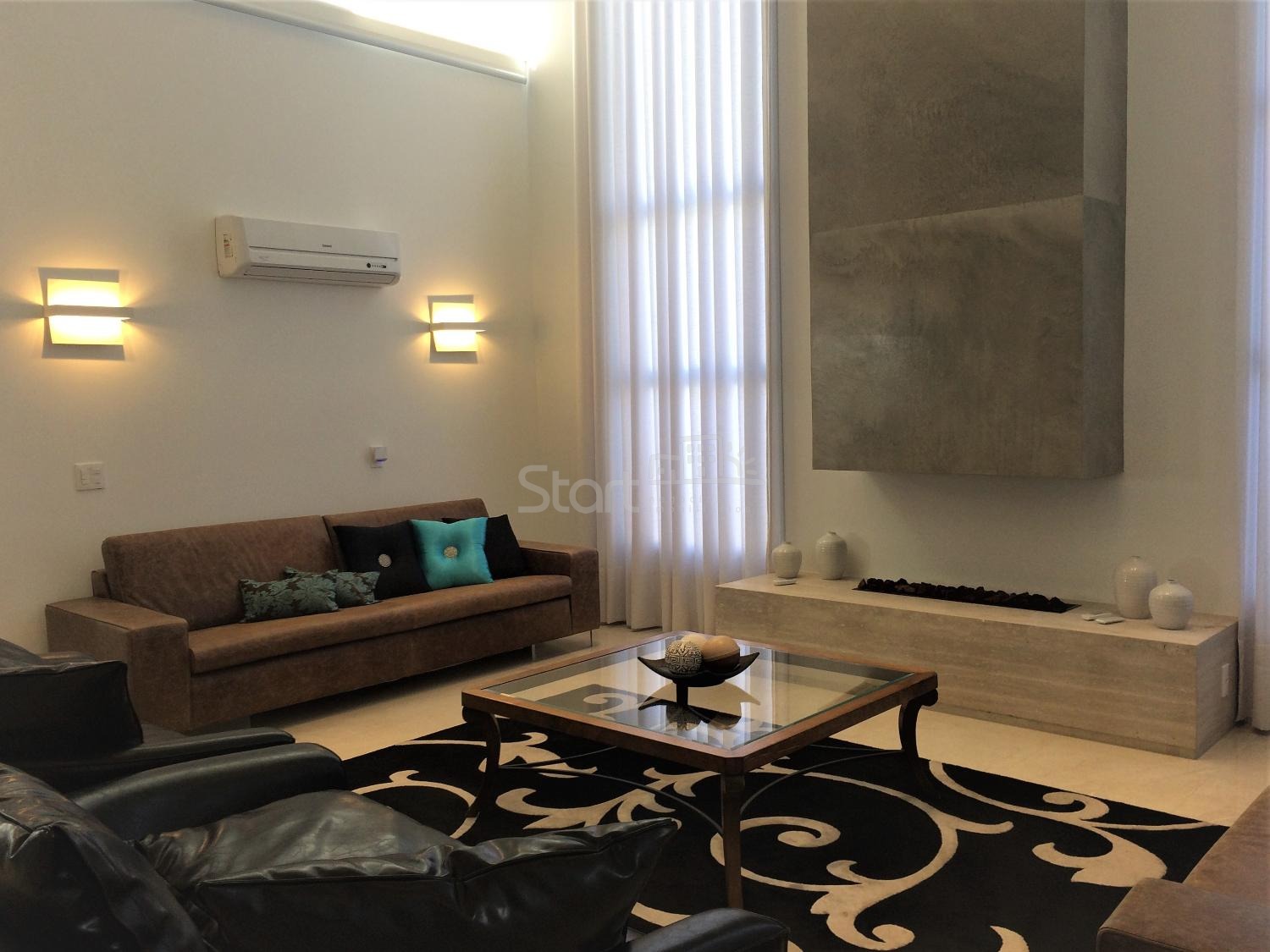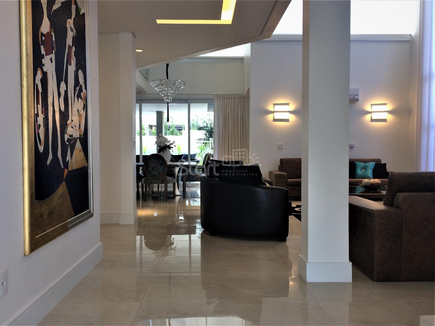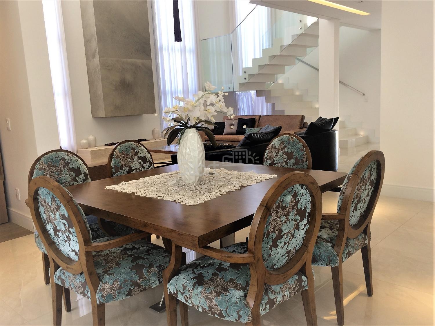 Casa totalmente mobiliada, com hall de entrada elegante e living com pé-direito duplo e lareira, proporcionando amplitude e iluminação natural marcante. Lavabo refinado e ambientes pensados para receber com charme e funcionalidade.