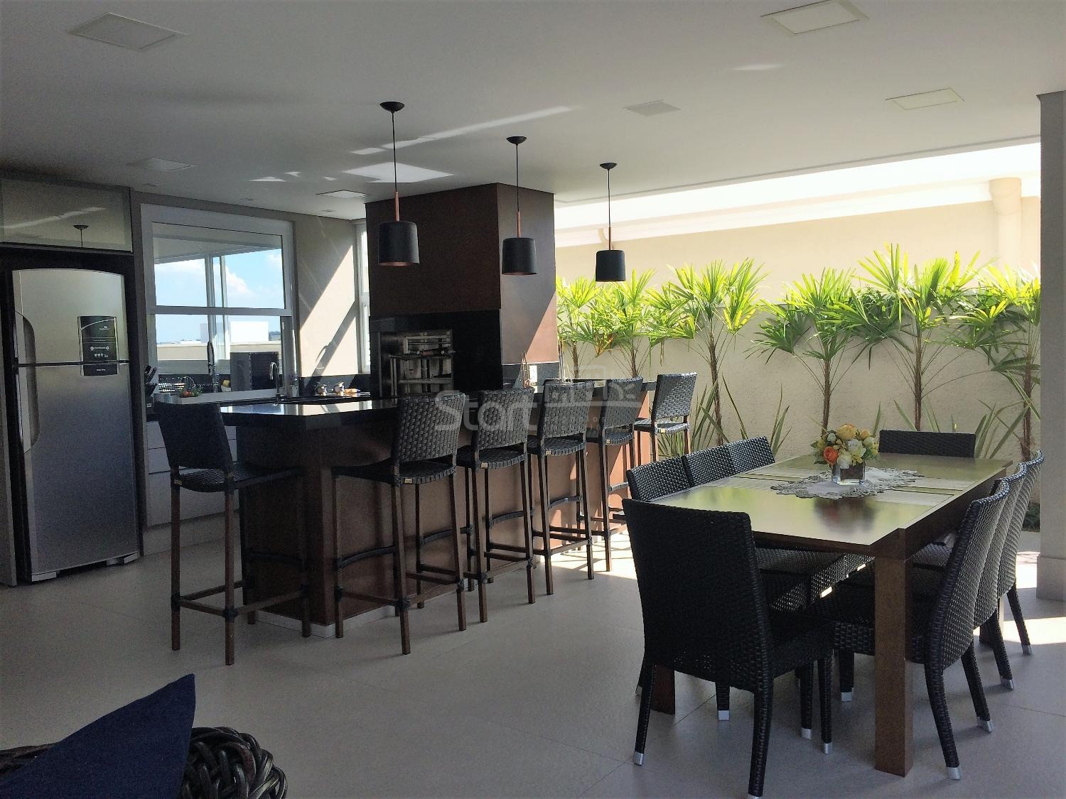 O espaço gourmet é um espetáculo à parte: totalmente integrado, perfeito para momentos memoráveis com família e amigos, conectado à piscina e sauna, criando uma atmosfera de resort particular.