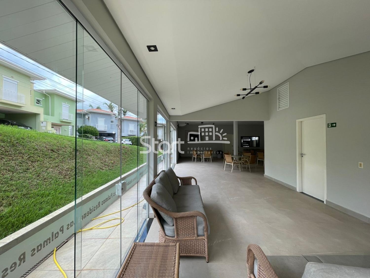 Sobrado bem localizado no condomínio, com 2 dormitórios (com 1 suíte, quarto com closet, sala de tv). Área social com sala de estar, jantar, sala de TV, cozinha integrada, espaço gourmet, lavabo e quintal gourmet com churrasqueira, 2 vagas de garagem.