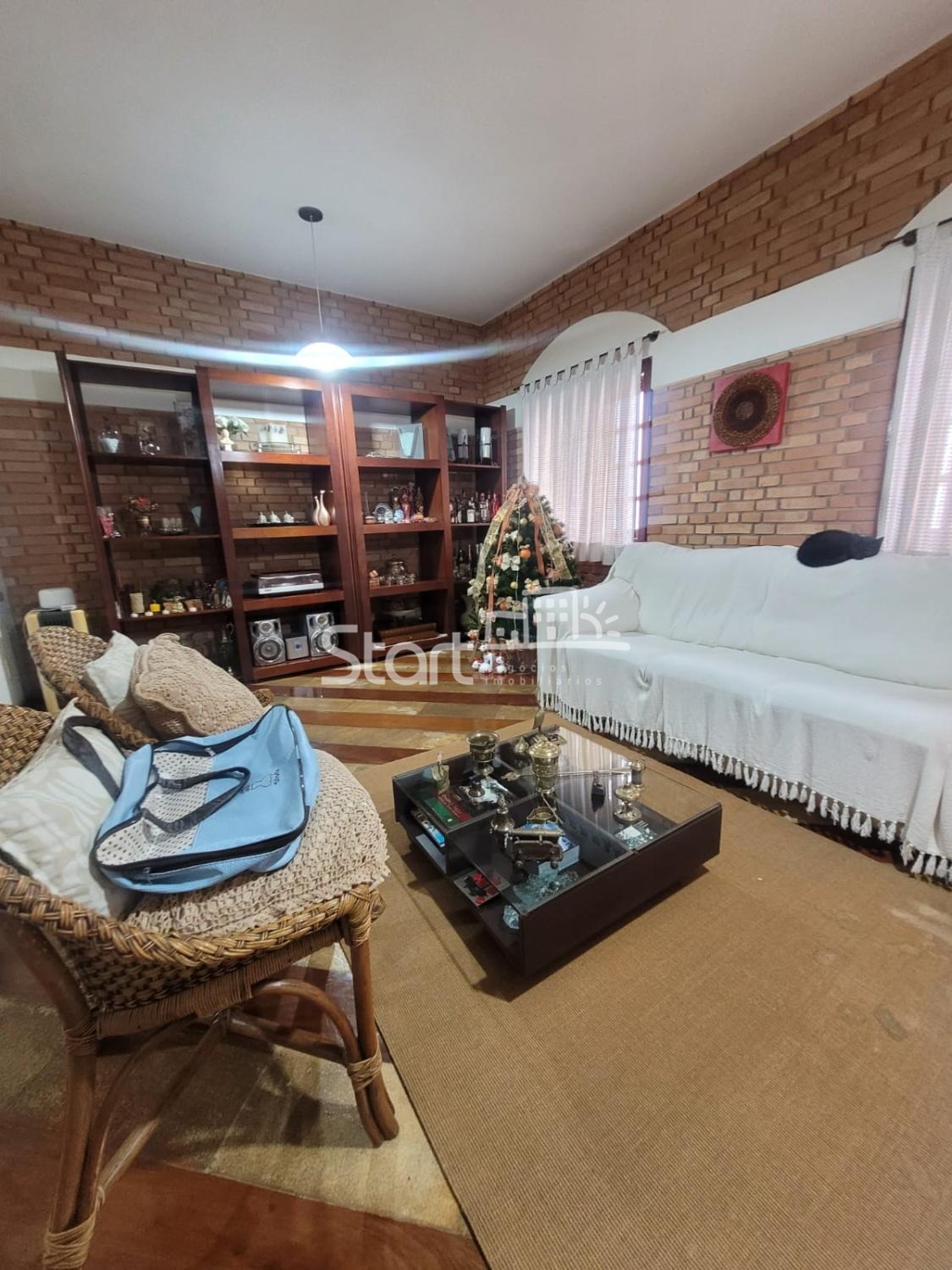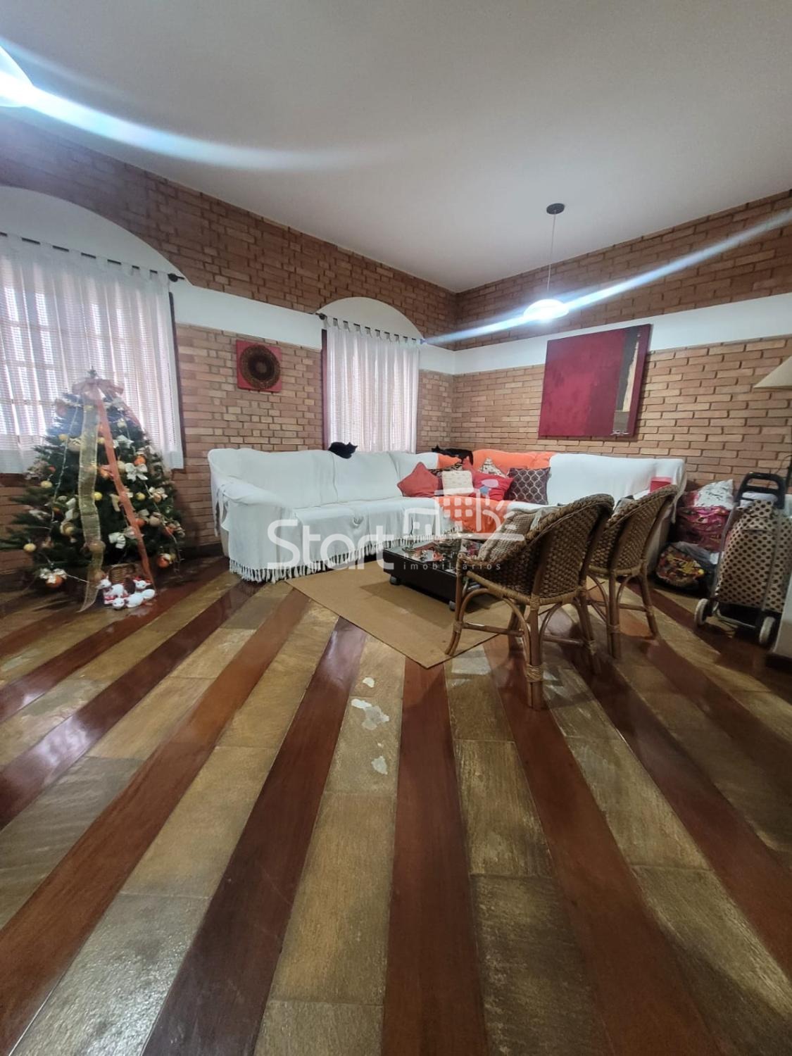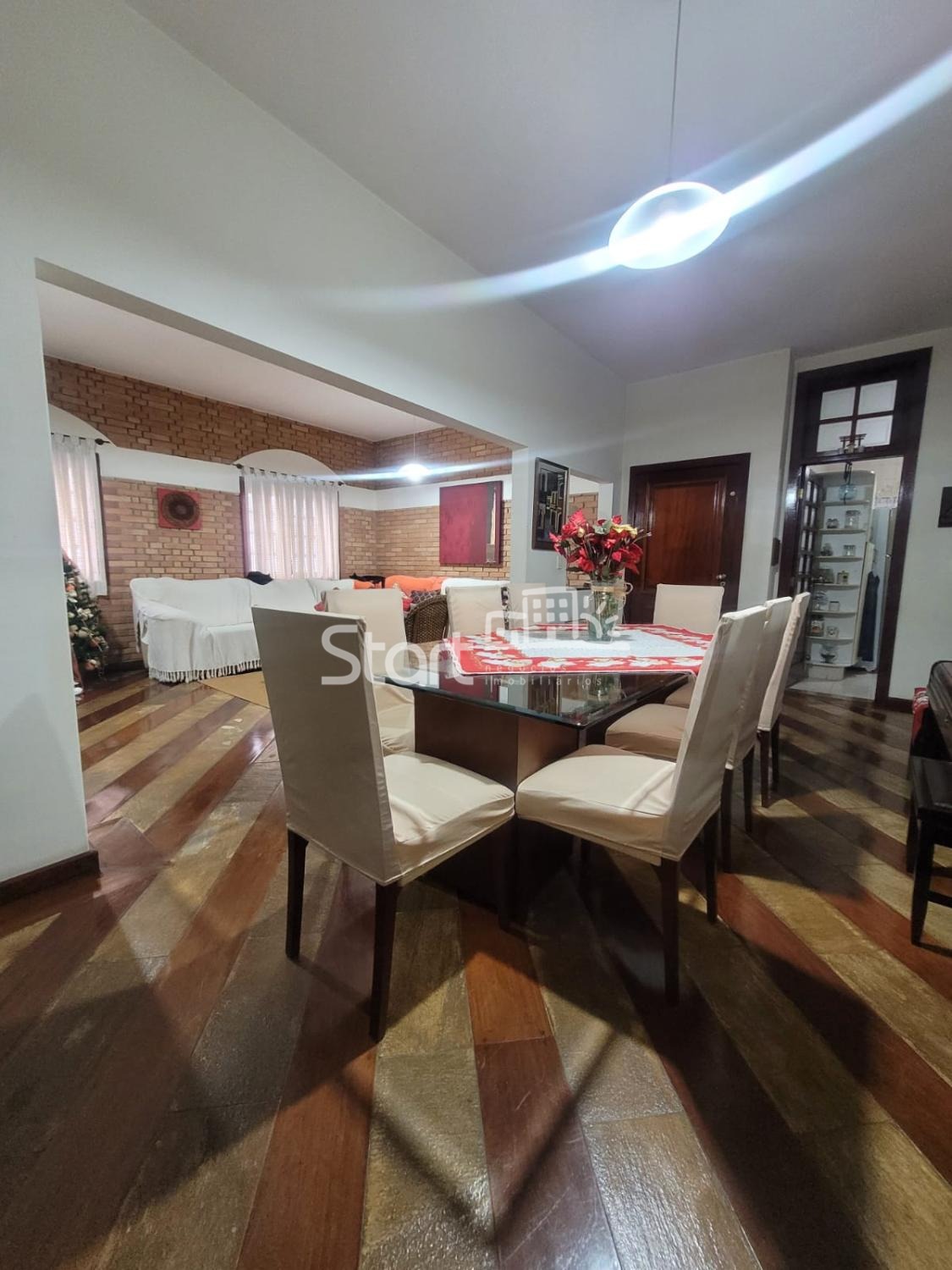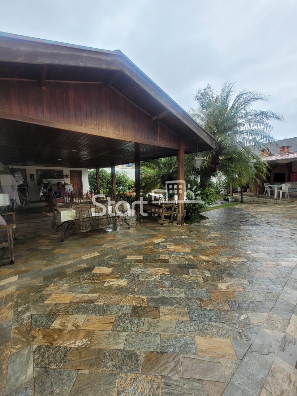 Casa térrea com projeto de arquitetura estilo rústico, tacos de madeira, armários planejados de madeira maciça, sala ampla, sala de jantar, cozinha, 4 quartos, sendo um suíte e um banheiro social com banheira, área de serviço, quintal com edícula, escritório planejado nos fundos (pode ser usado como um quinto quarto ou depósito, banheiro externo, paisagismo, churrasqueira, forno à lenha, piscina (necessita reparos), câmera de segurança, garagem para 4 carros e portão eletrônico.
