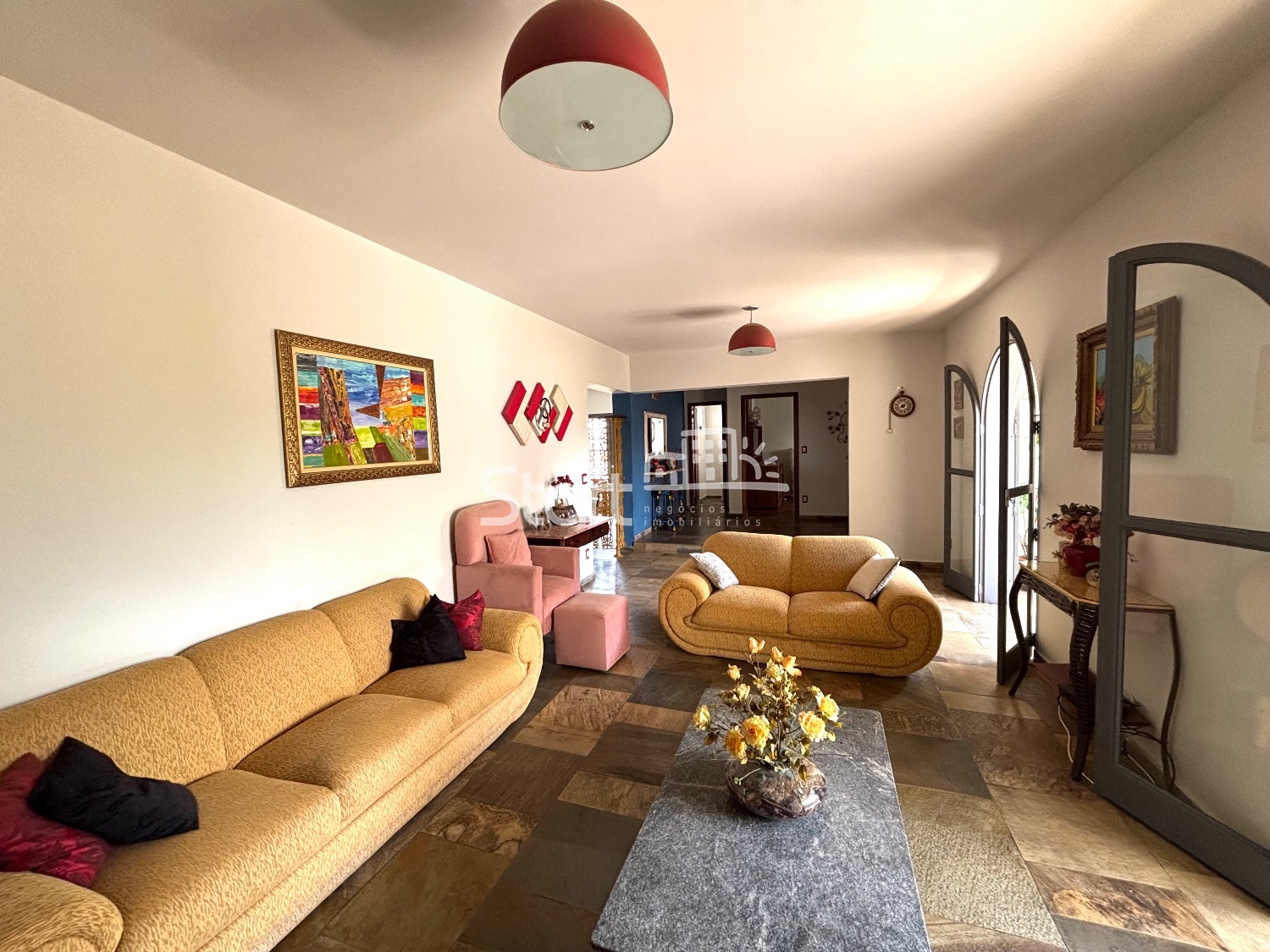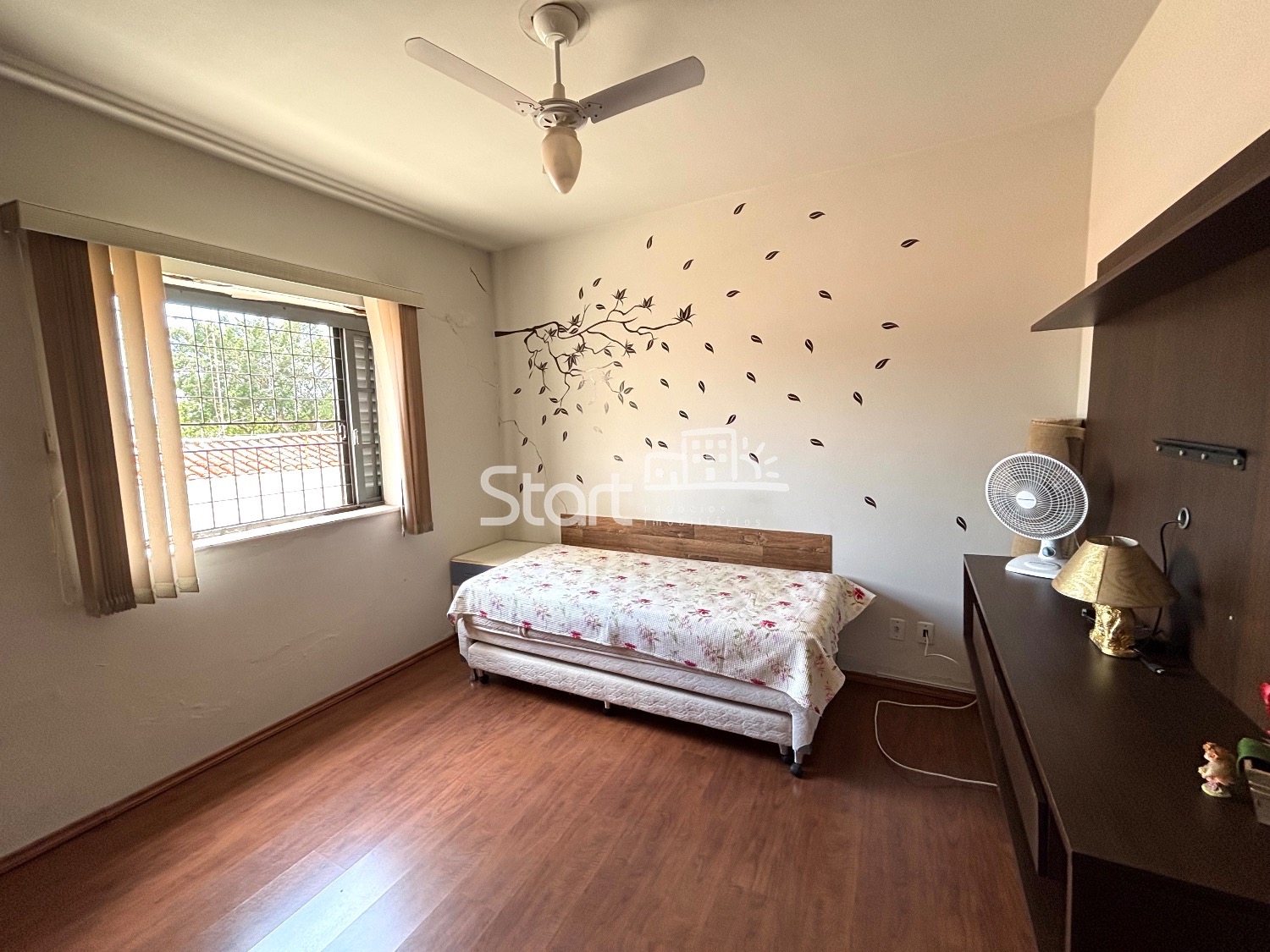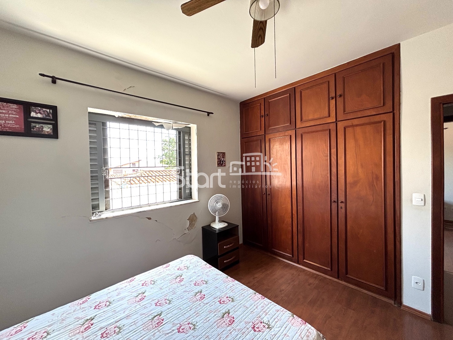 5 quartos sendo 2 suítes, uma com banheira, todos com armários embutidos e ventiladores de teto.