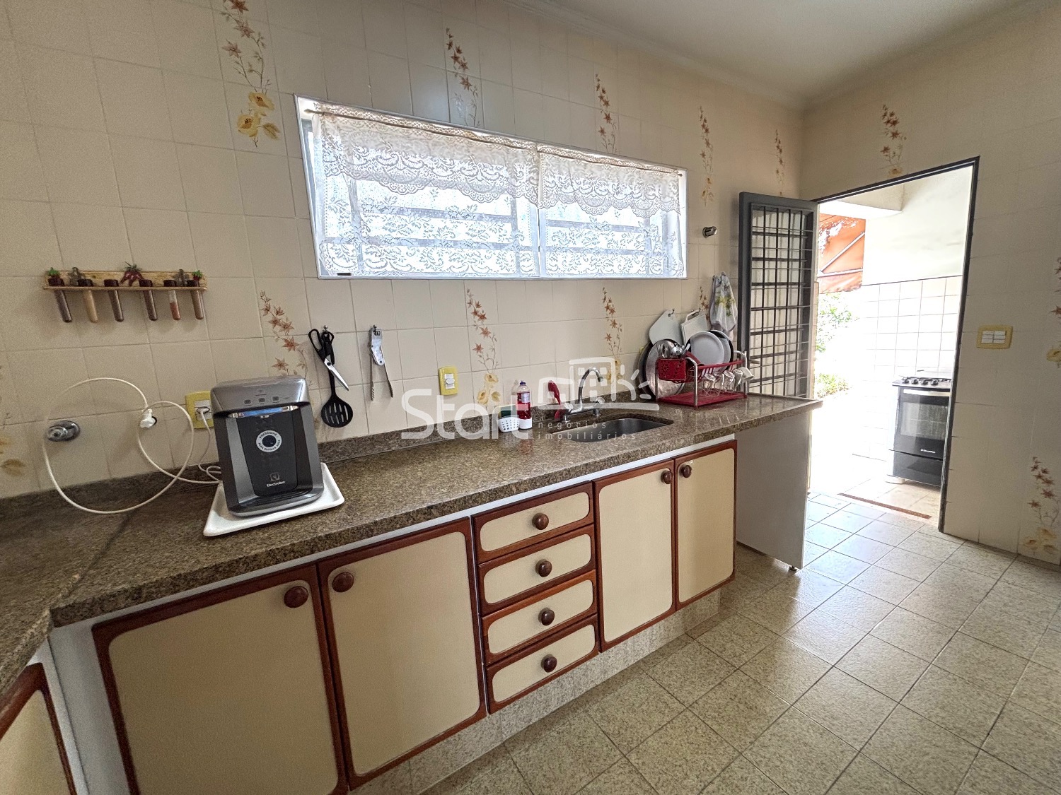 Sala de jantar, cozinha ampla planejada com copa e despensa, lavanderia separada coberta.