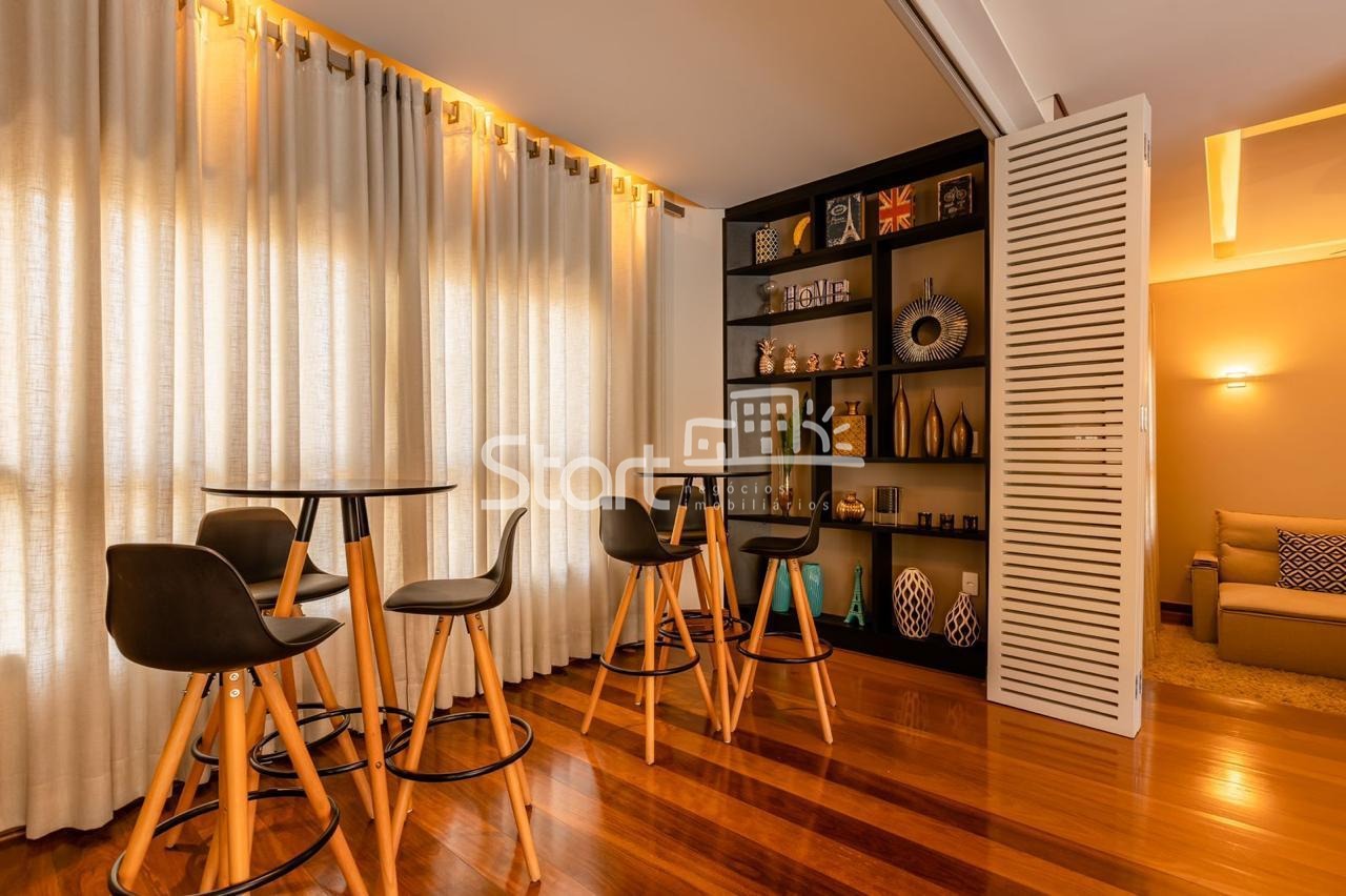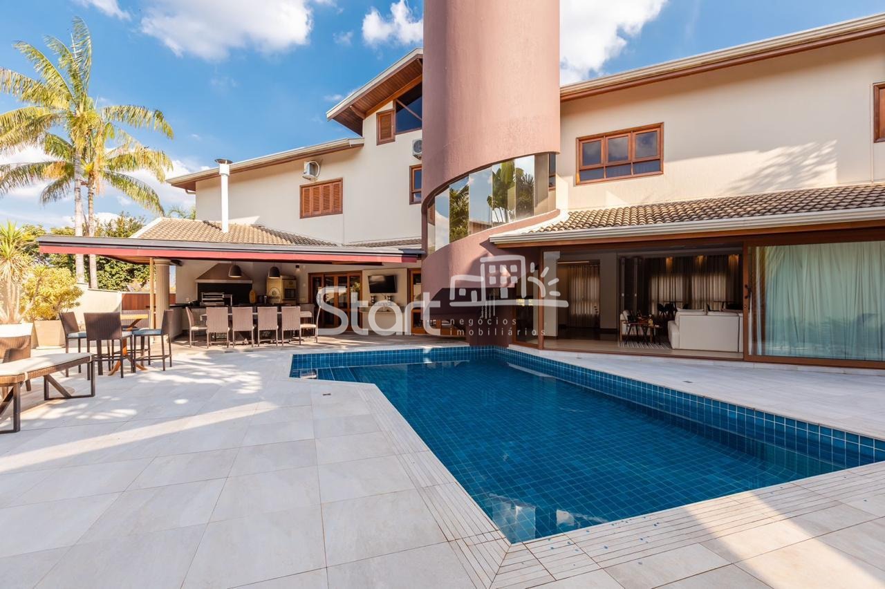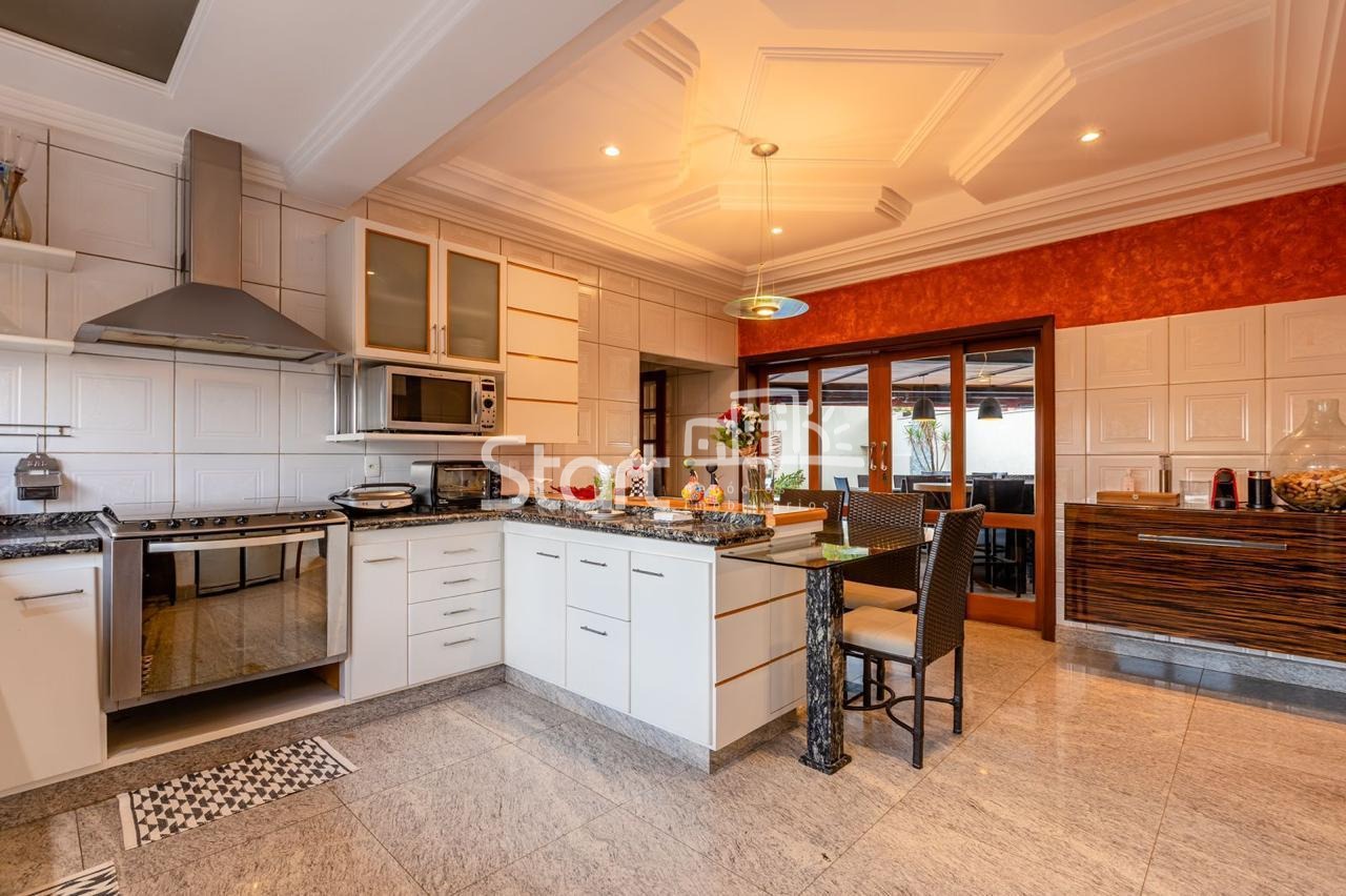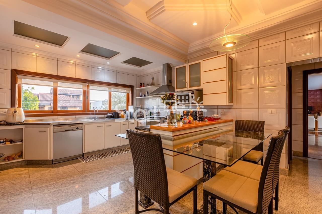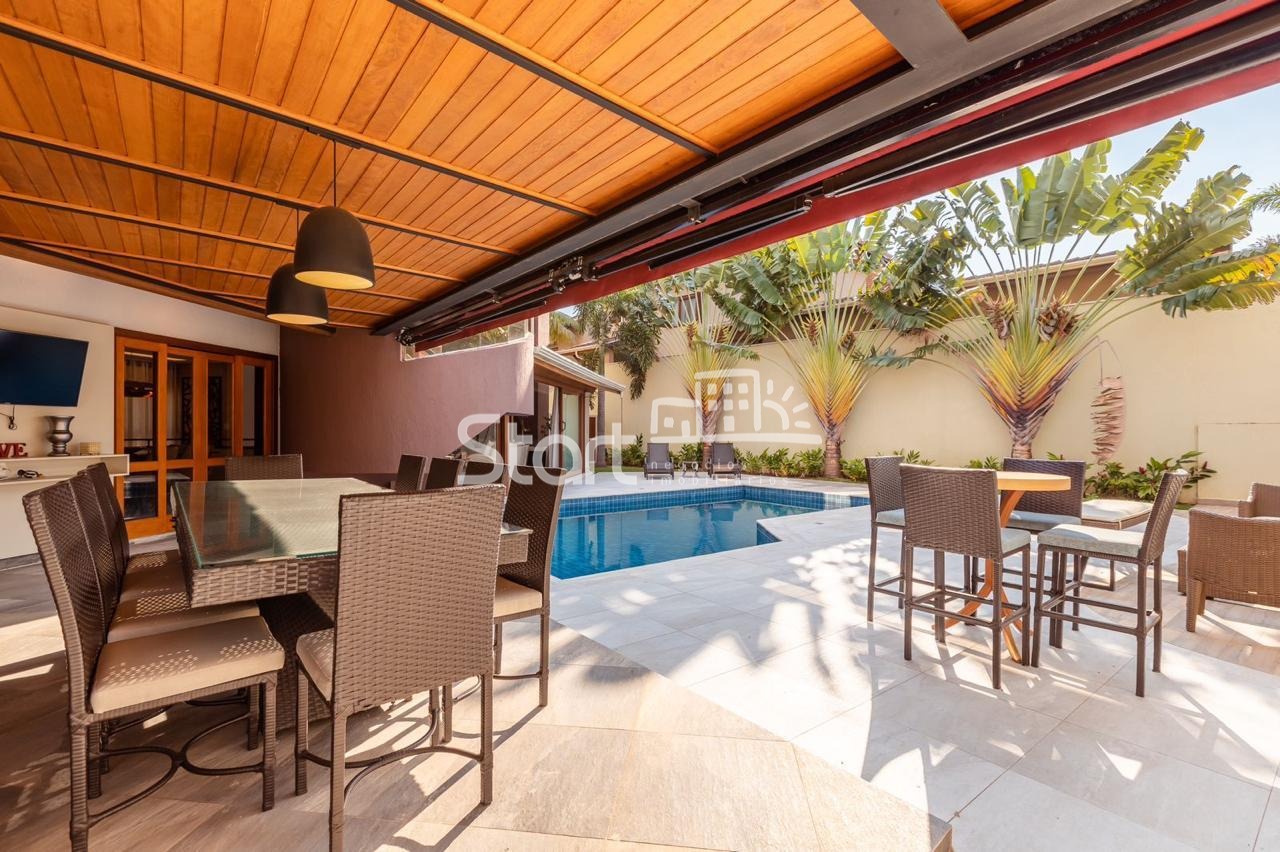 Conta com 3 suítes no piso superior e uma no piso superior, onde também há uma sala de TV e home cinema com acesso a uma ampla varanda.