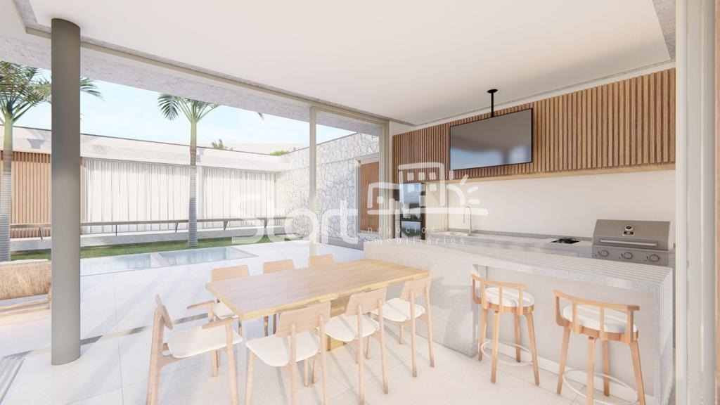 Com arquitetura moderna, a fachada elegante e o paisagismo impecável conferem sofisticação e requinte desde o primeiro olhar. O amplo living com pé-direito duplo integra-se harmoniosamente à sala de jantar e ao home theater, criando ambientes ideais para convivência e entretenimento.