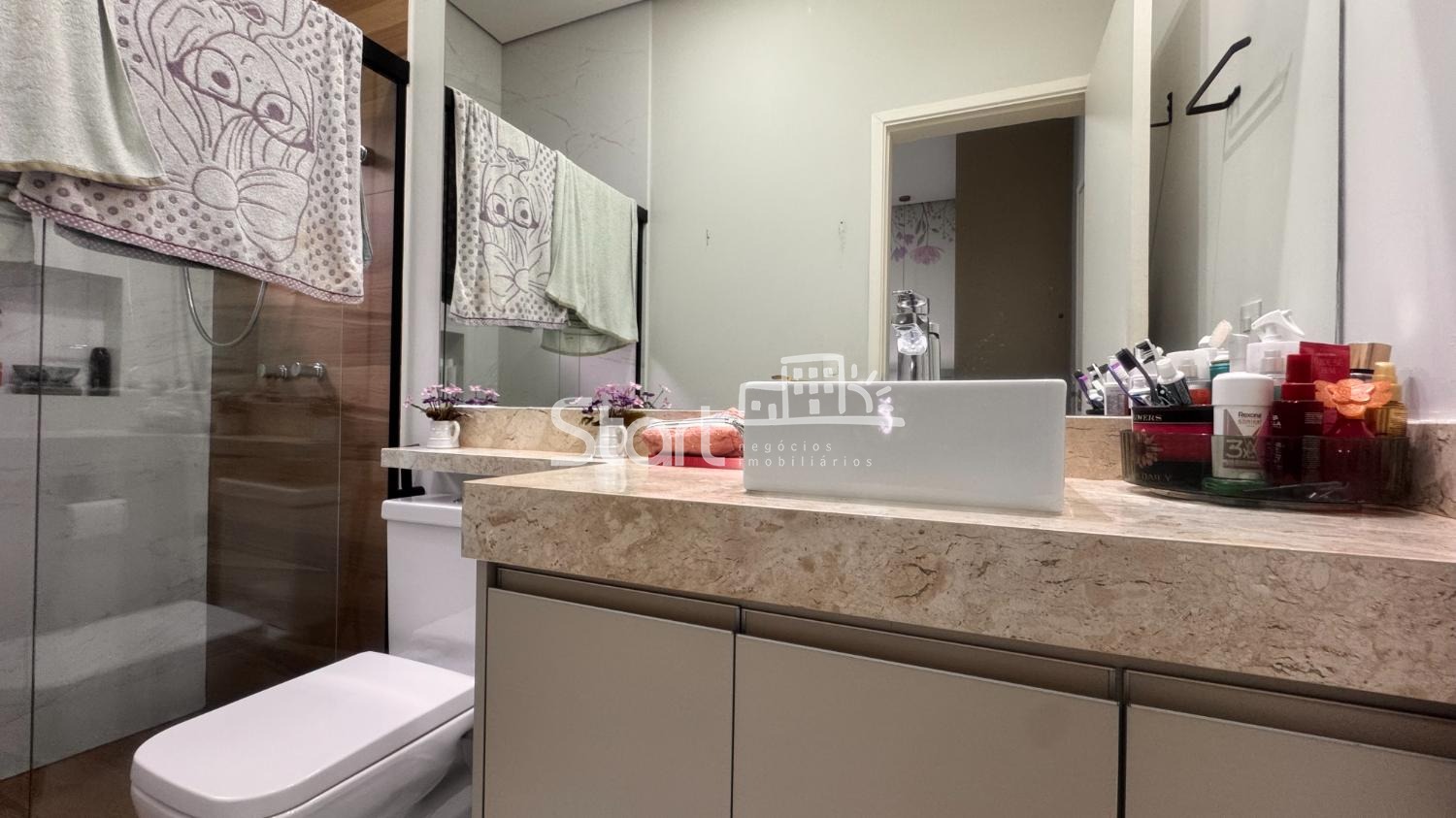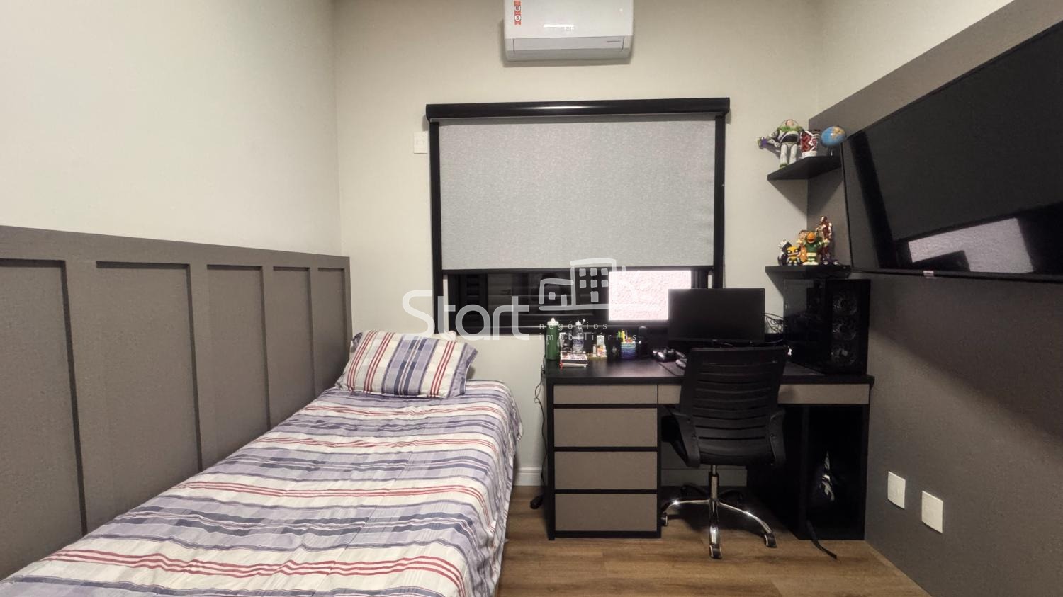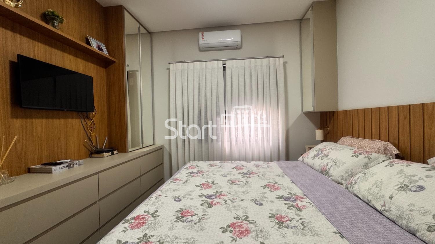 Na área íntima, o imóvel dispõe de 3 suítes planejadas, todas com excelente aproveitamento de espaço e ar-condicionado.