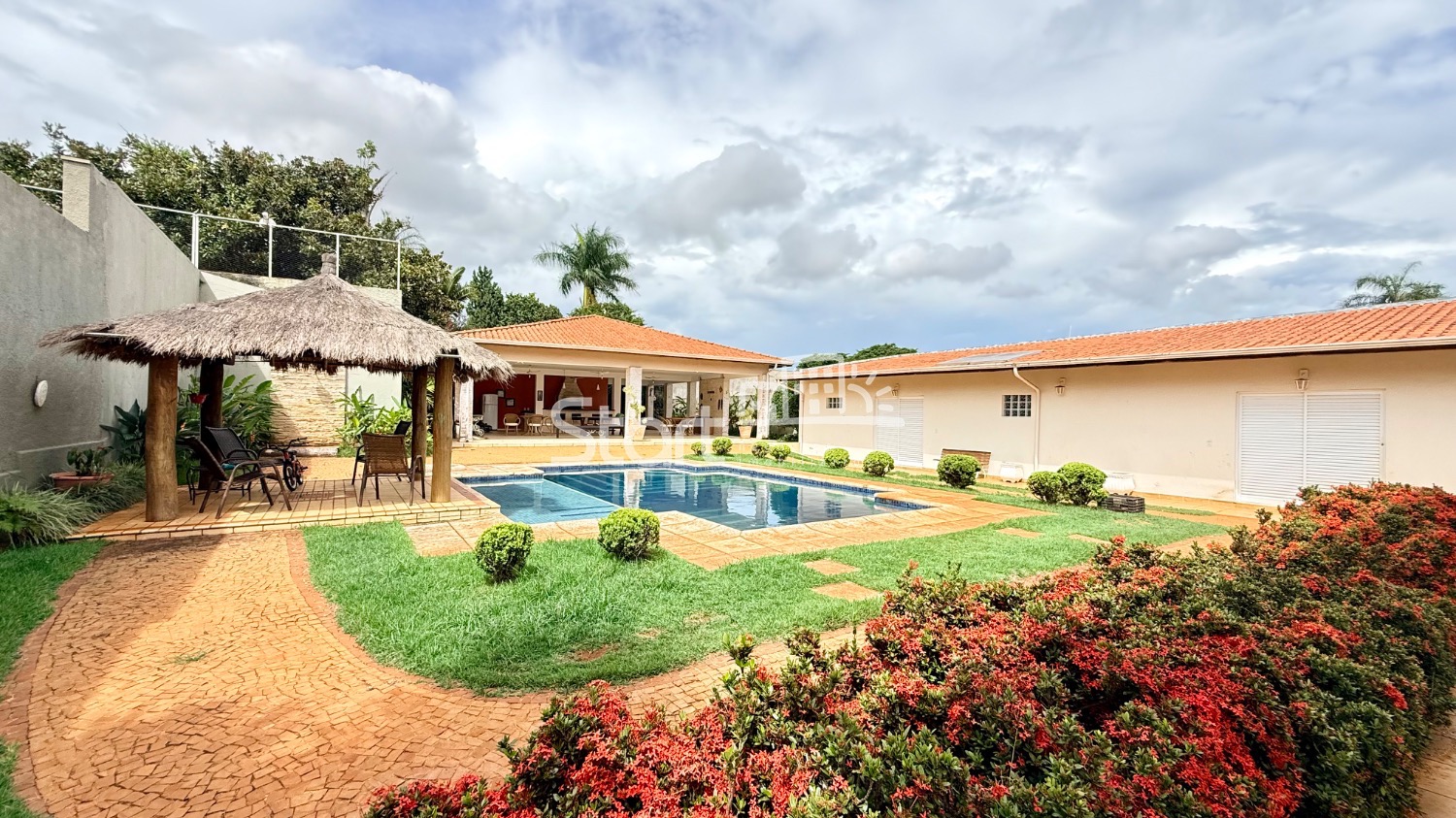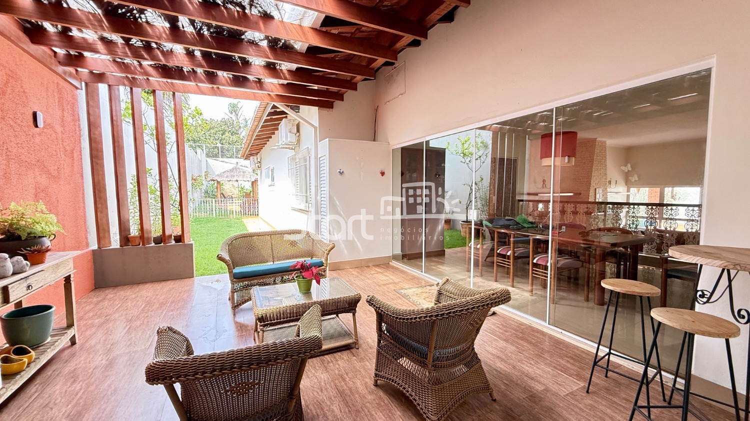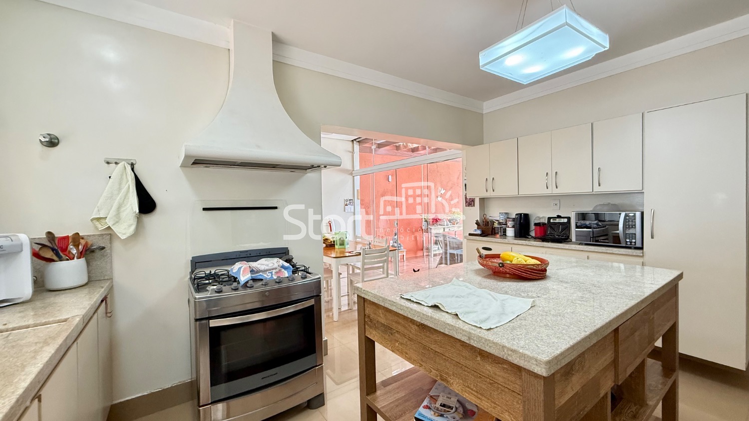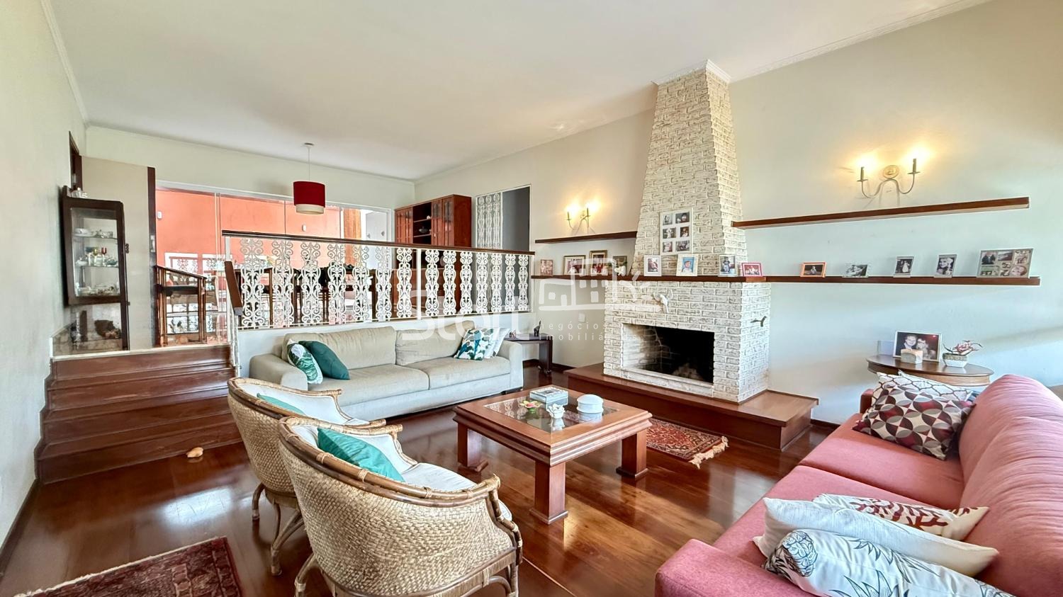 Conta com sala de estar com lareira, sala de jantar, lavabo, escritório com ar-condicionado, cozinha ampla e planejada com copa, integrada a uma agradável área de luz com pergolado. São 04 dormitórios, sendo 03 com armários embutidos, 03 com ar-condicionado e 01 suíte.