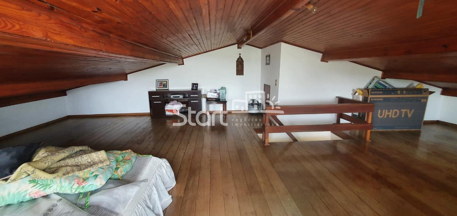 Sótão com acabamento em madeira, e uma linda sacada com vista panoramica.