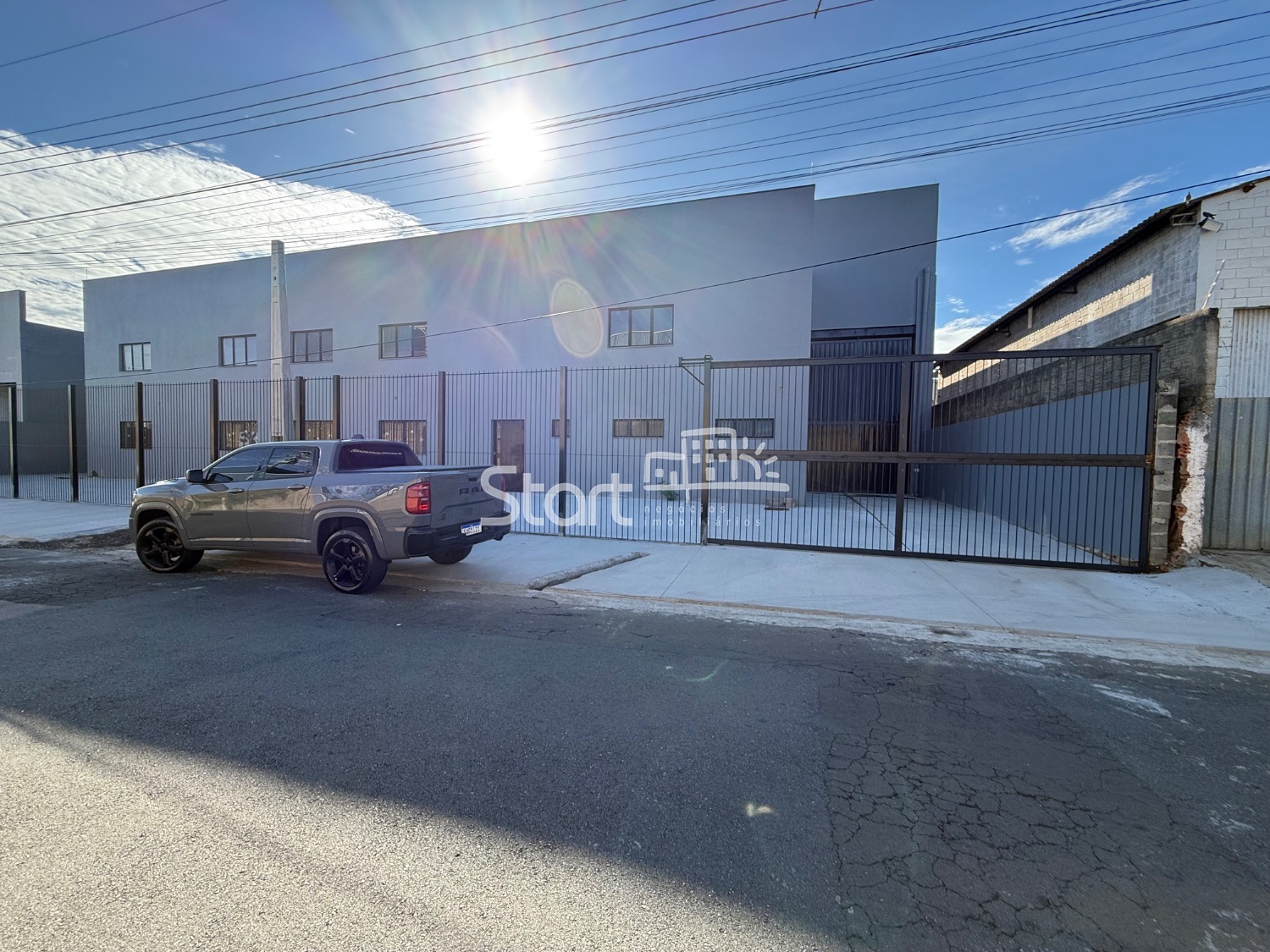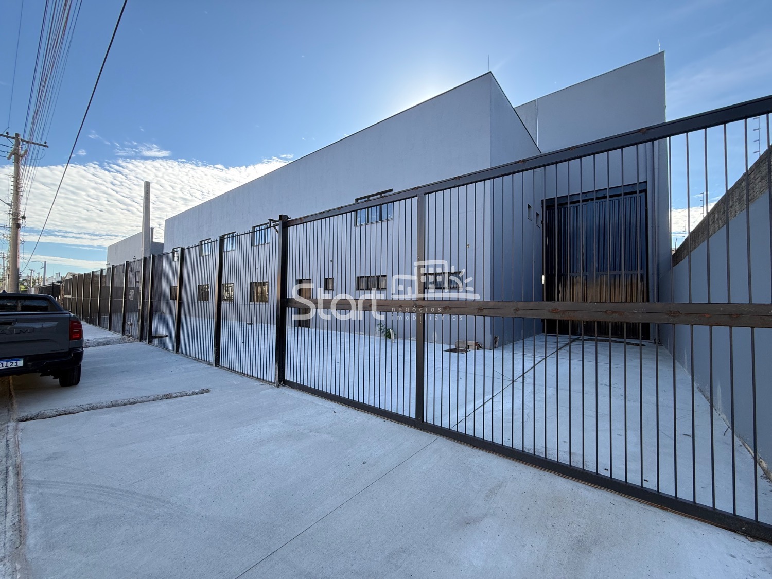 Conta com 1.850 m2 de construção, sendo 250 m2 de escritório, vestiários e refeitório, 1.600 m2 de vão livre, pé direito de 8 metros, piso para 6 tonelada por m2.