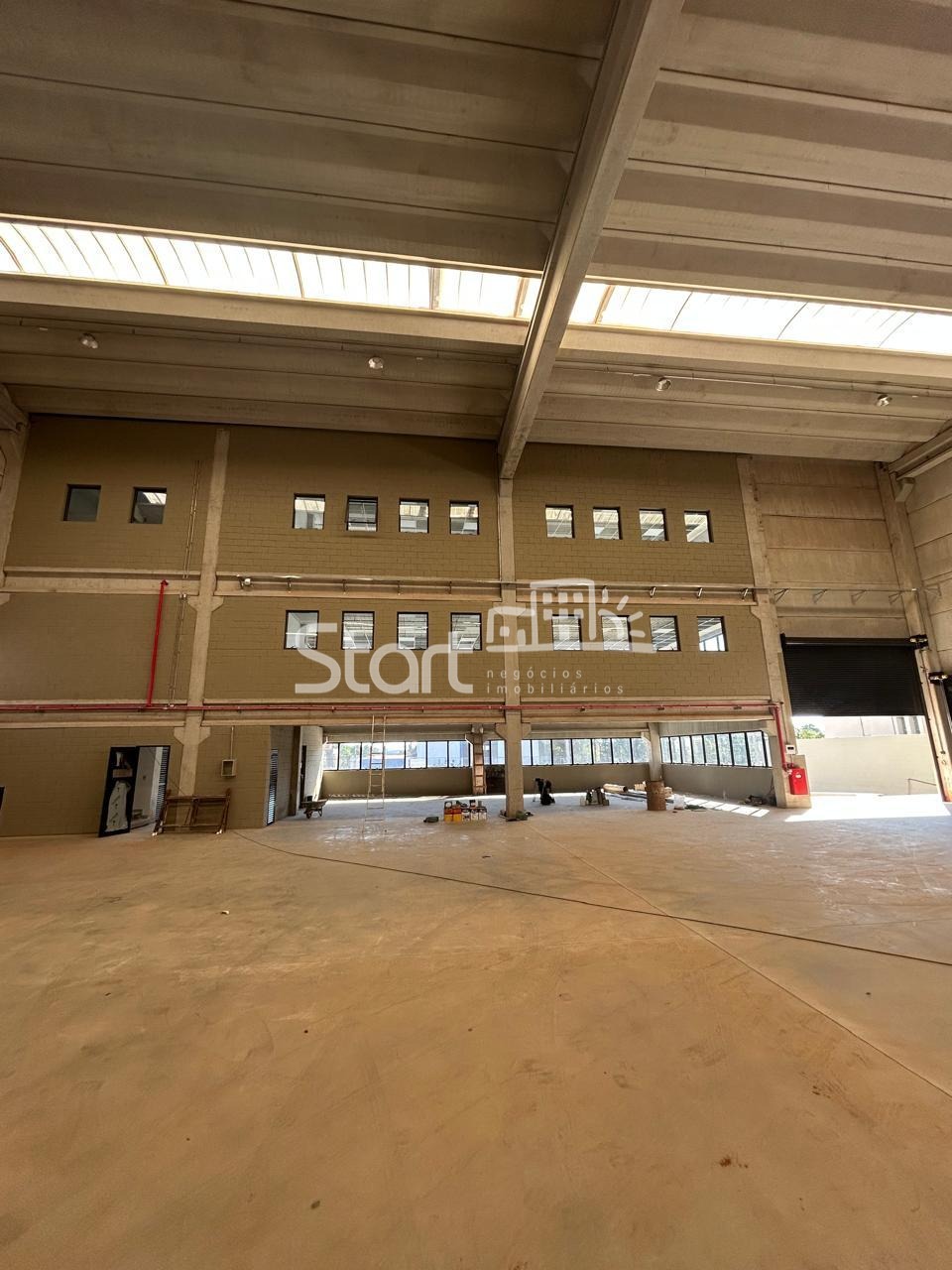 Galpão com 2.500m², doca, piso industrial, pé direito, mezanino, elevador, vestiários, banheiros, refeitório, bombeiro J4, entrada em nível galpão, área de estacionamento.