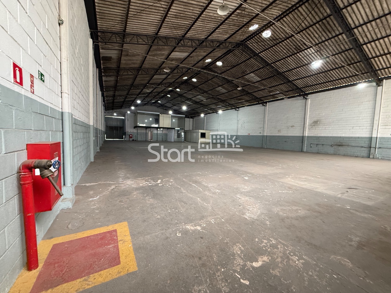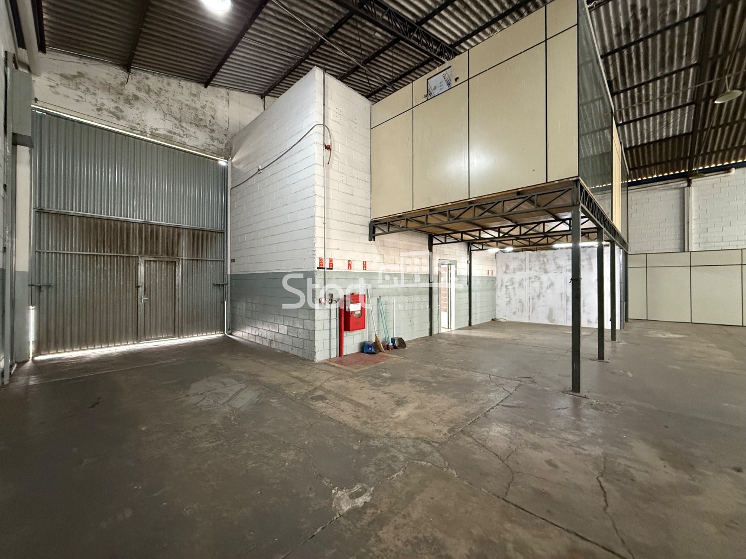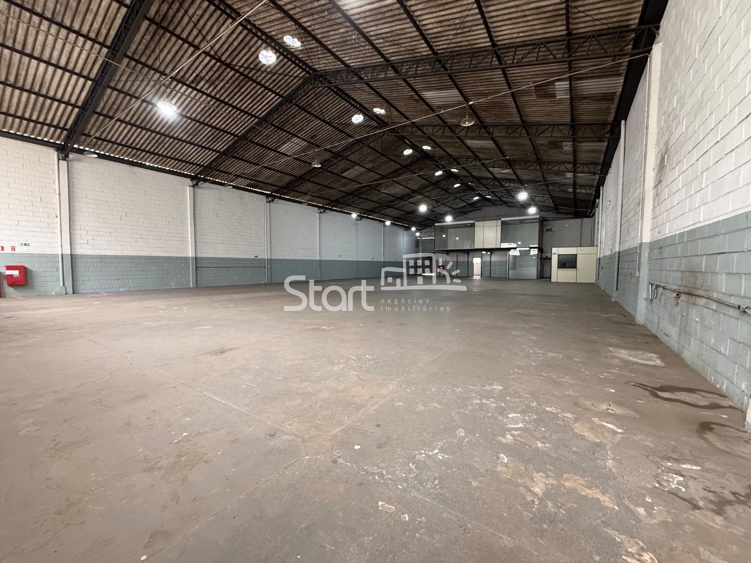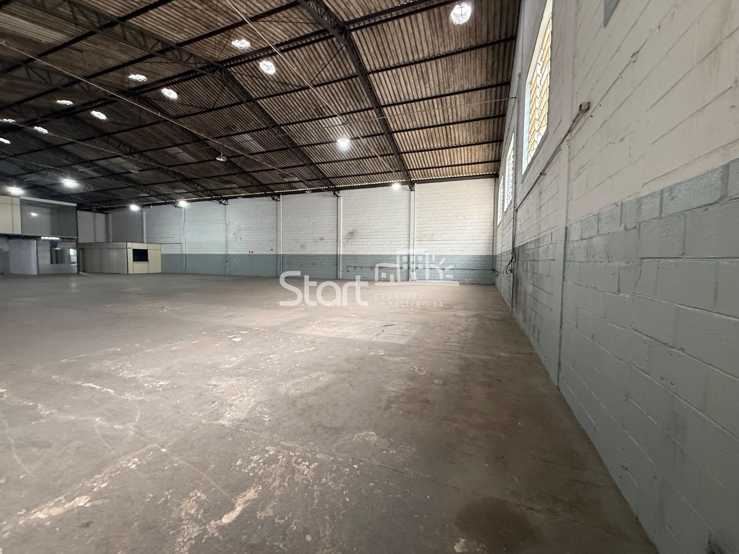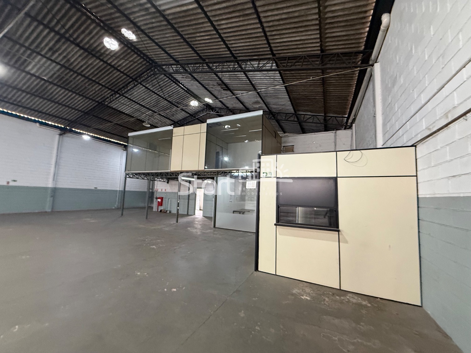 982 m2 de construção, sendo 800 m2 de vão livre, pé direito de 7 metros, entrada para carreta, 182 m2 de área administrativa com recepção, copa, vestiário, sala de reunião, sala administrativa 4 banheiros.