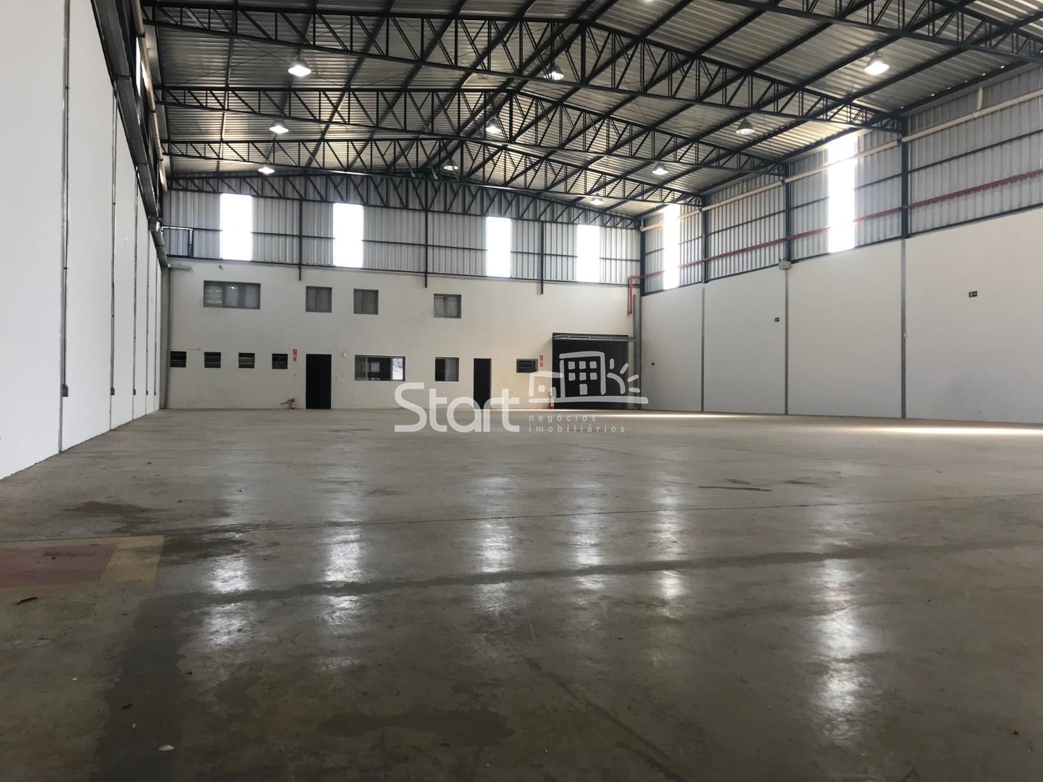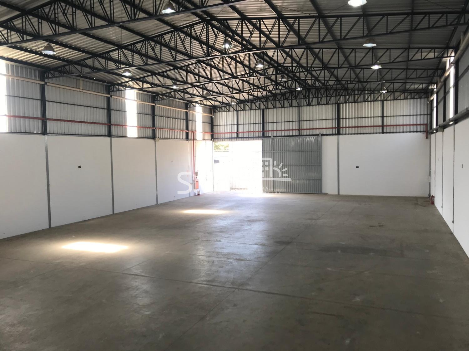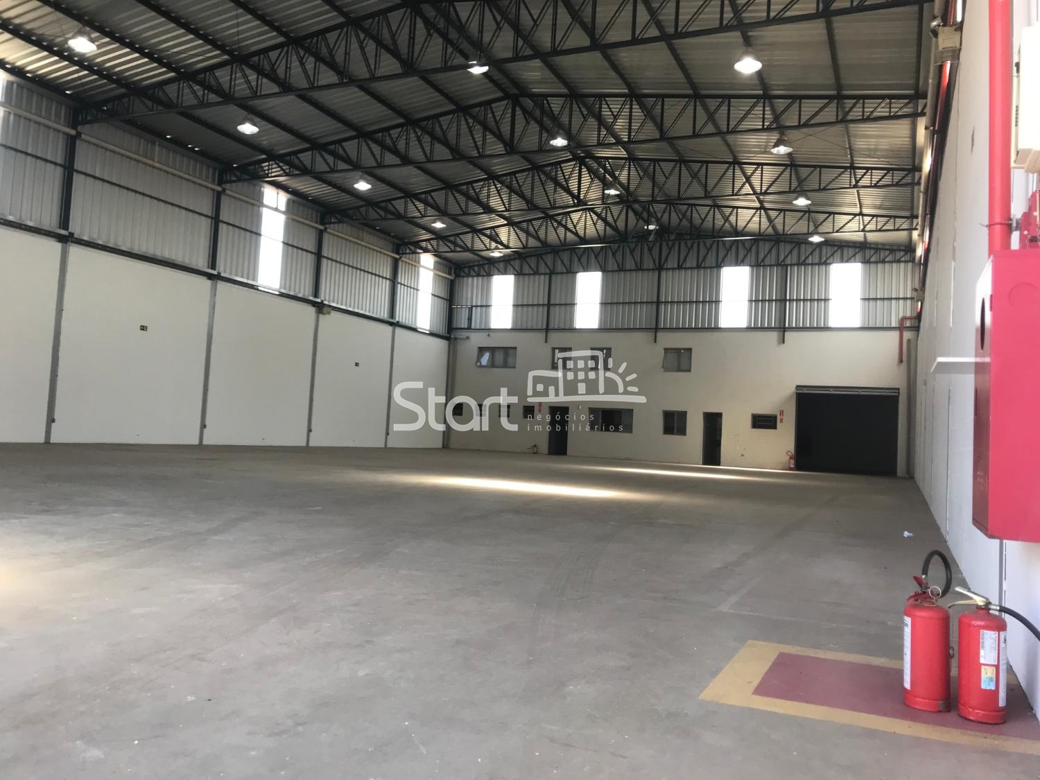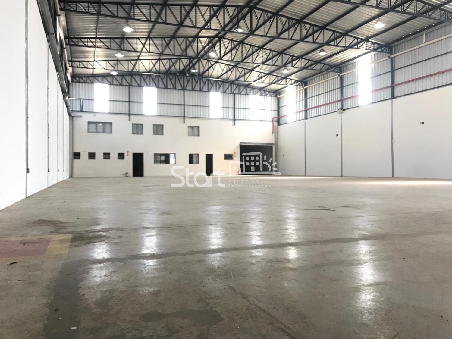 1.127 m2 de construção, sendo 427 m2 de escritório, vestiários e refeitório, 700 m2 de vão livre, pé direito de 10 metros, piso para 6 tonelada por m2.