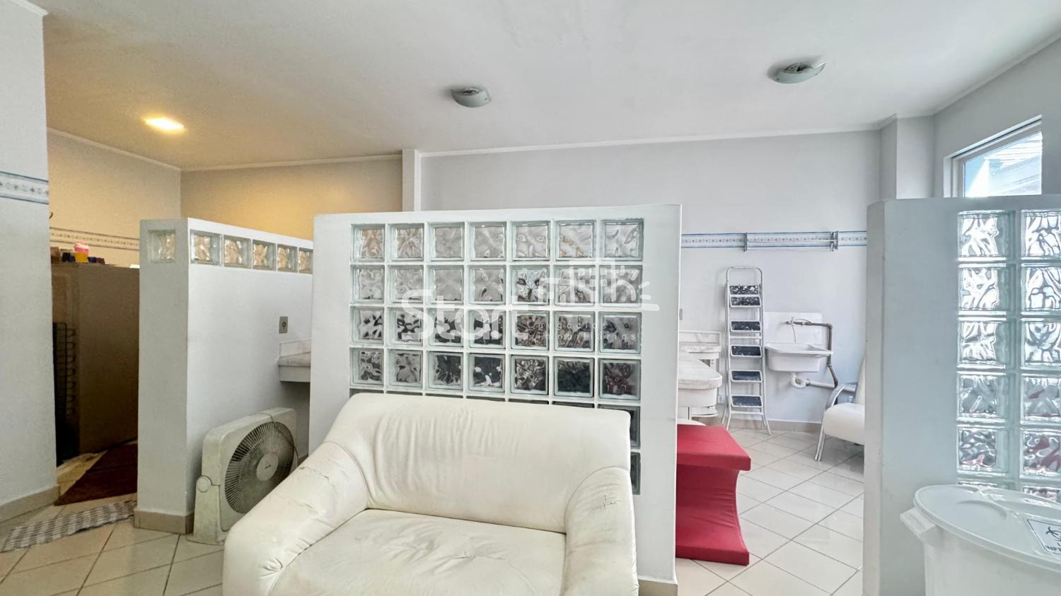Piso térreo com amplo salão, sala de com lavabo, copa e 02 banheiros.