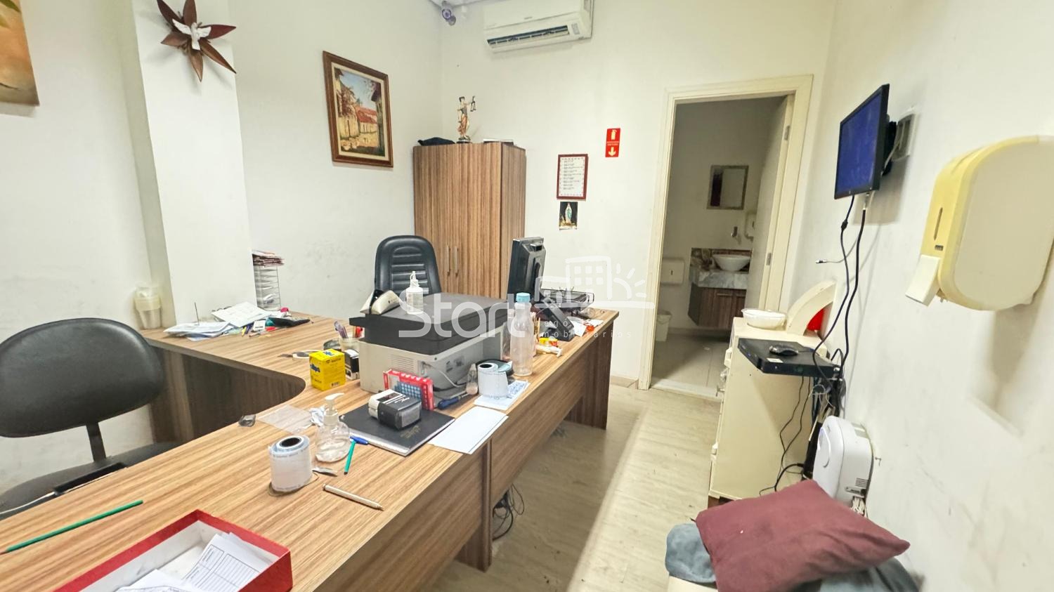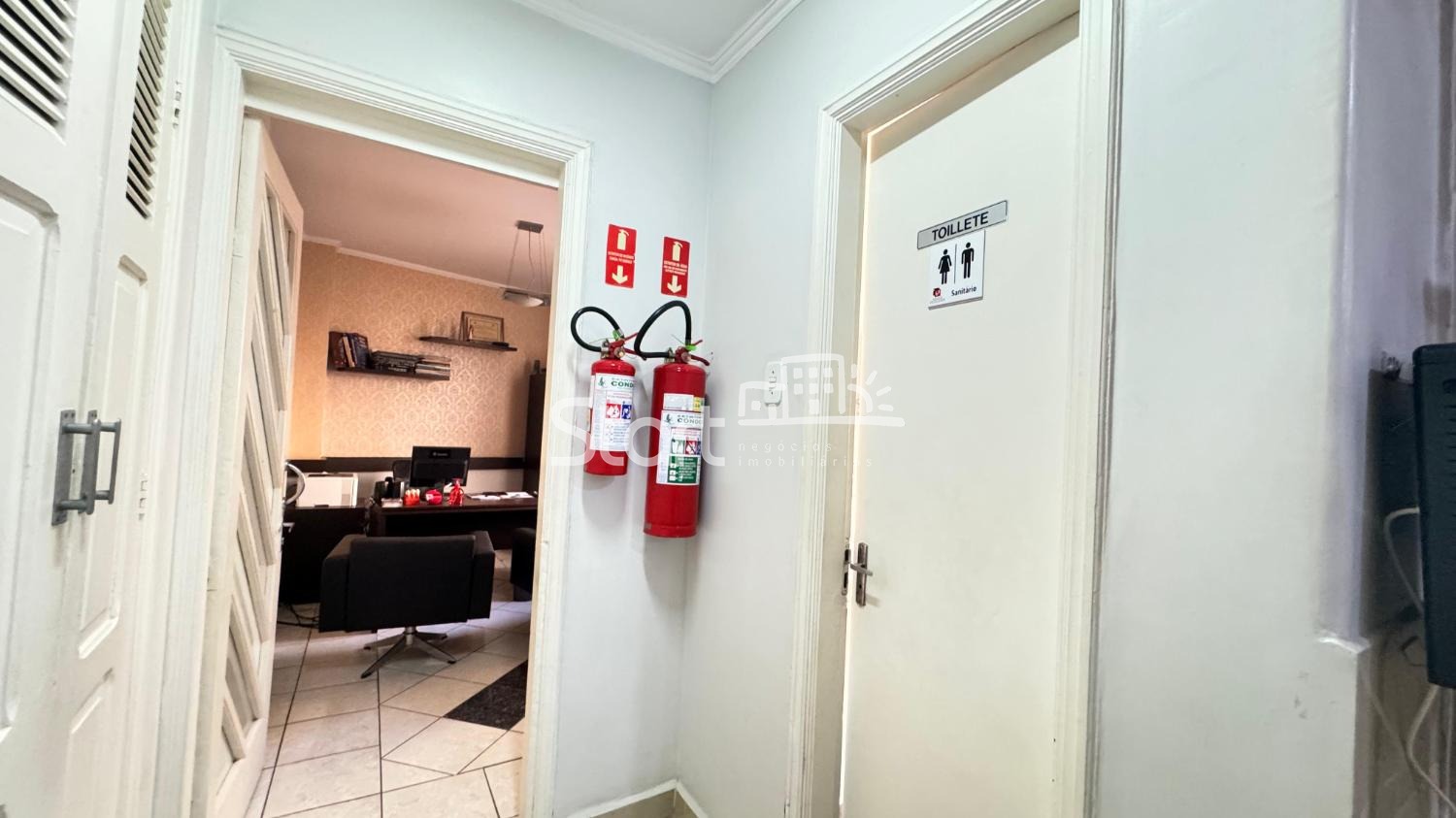 Piso superior com ampla recepção, escritório, salas de atendimentos.