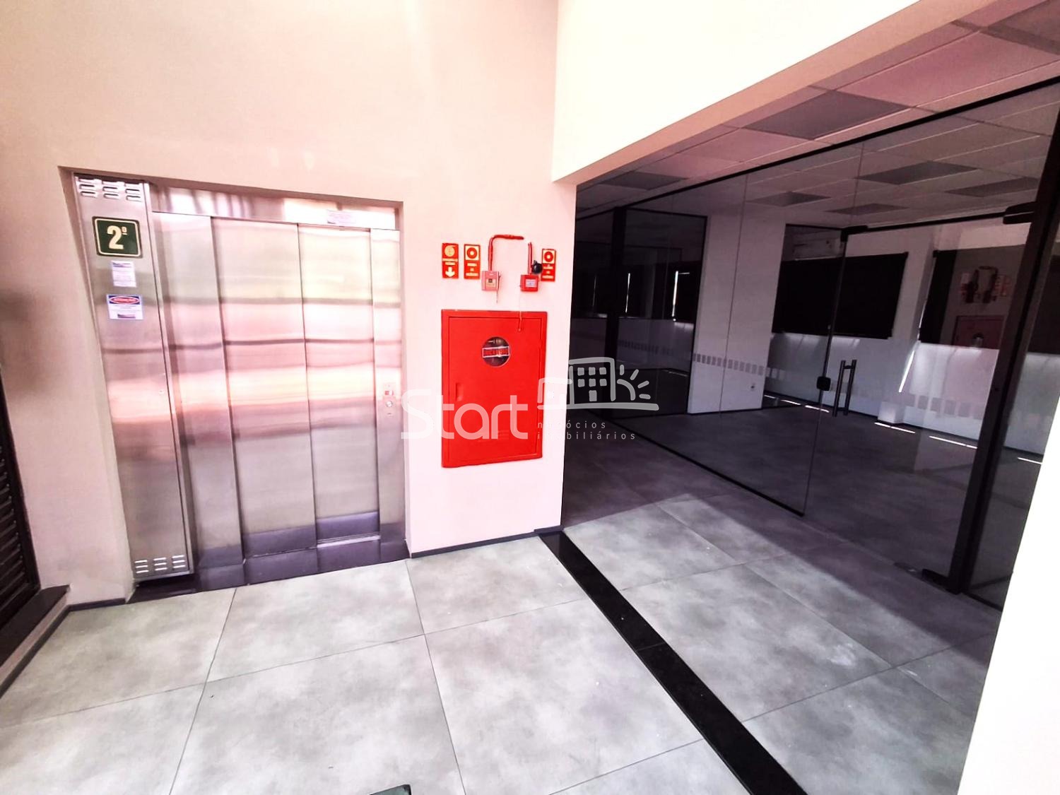 Hall de entrada no piso térreo com acesso por elevador.