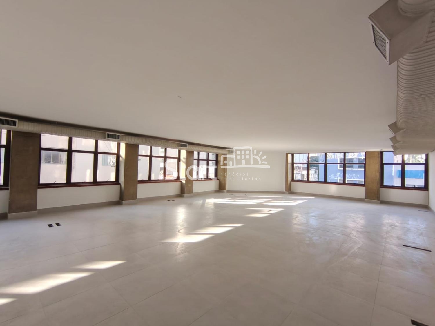 O imóvel apresenta acabamento moderno com piso em porcelanato, excelente iluminação natural e infraestrutura pronta para climatização.