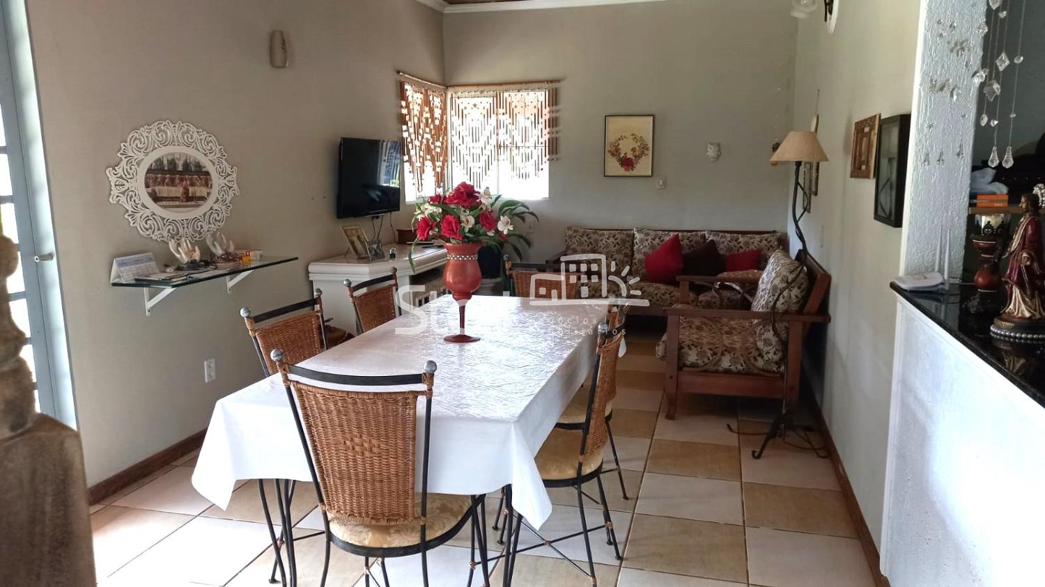 Sala integrada com a sala de jantar, cozinha americana, com pia de bancada de granito, lavanderia, cozinha de fogão à lenha com churrasqueira e dispensa.- Garagem para 3 carros.