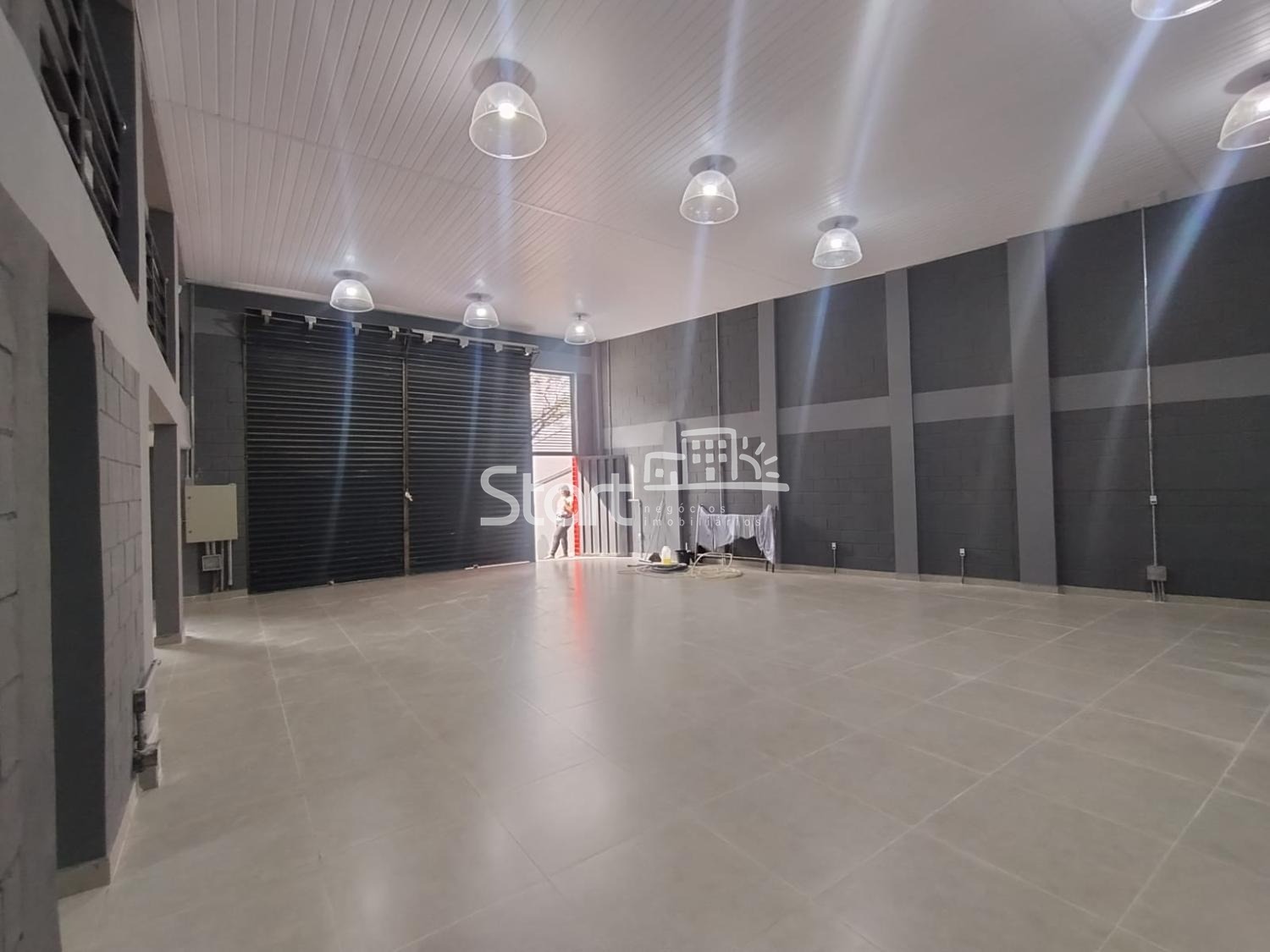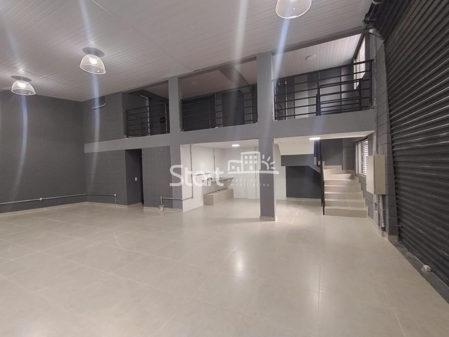 Pavimento superior: Amplo salão, 3 banheiros, copa, vitrine, portão de acesso para carga e descarga e 5 vagas de estacionamento frontal.