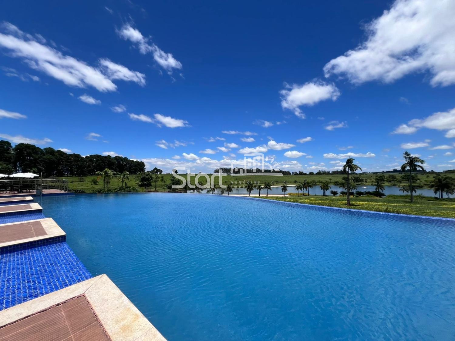 Piscina social com borda infinita
